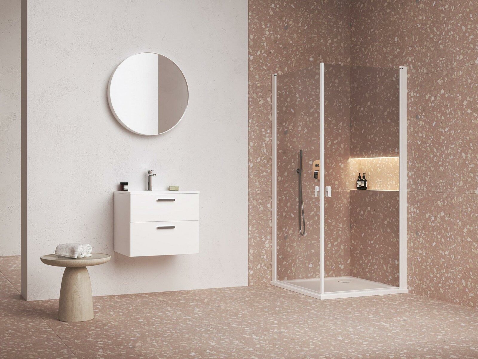Výrobek se montuje do obloženého rohu koupelny na lité vaničky Ravak nebo přímo na podlahu se zabudovaným odtokovým žlabem či podlahovou vpustí.