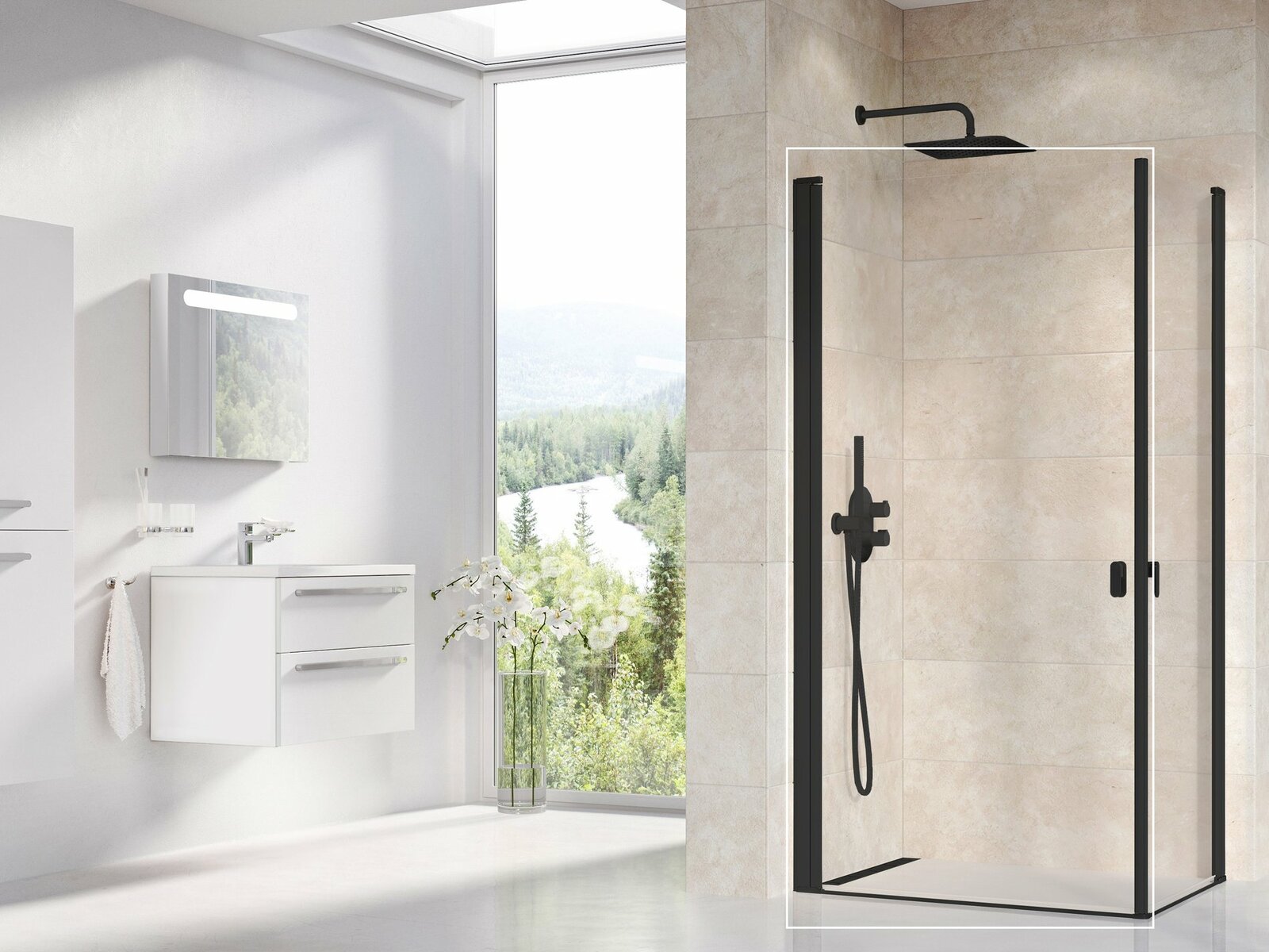 Polovina rohového sprchového koutu Chrome v provedení černá a s výplní z čirého skla s ochrannou vrstvou Ravak AntiCalc®. Pro druhou polovinu rohového sprchového koutu se výrobek kombinuje s CRV1, CRV2 nebo CPS. Pantový systém otevírání.- rozměr: 90 cm (1/2 sprchového koutu)