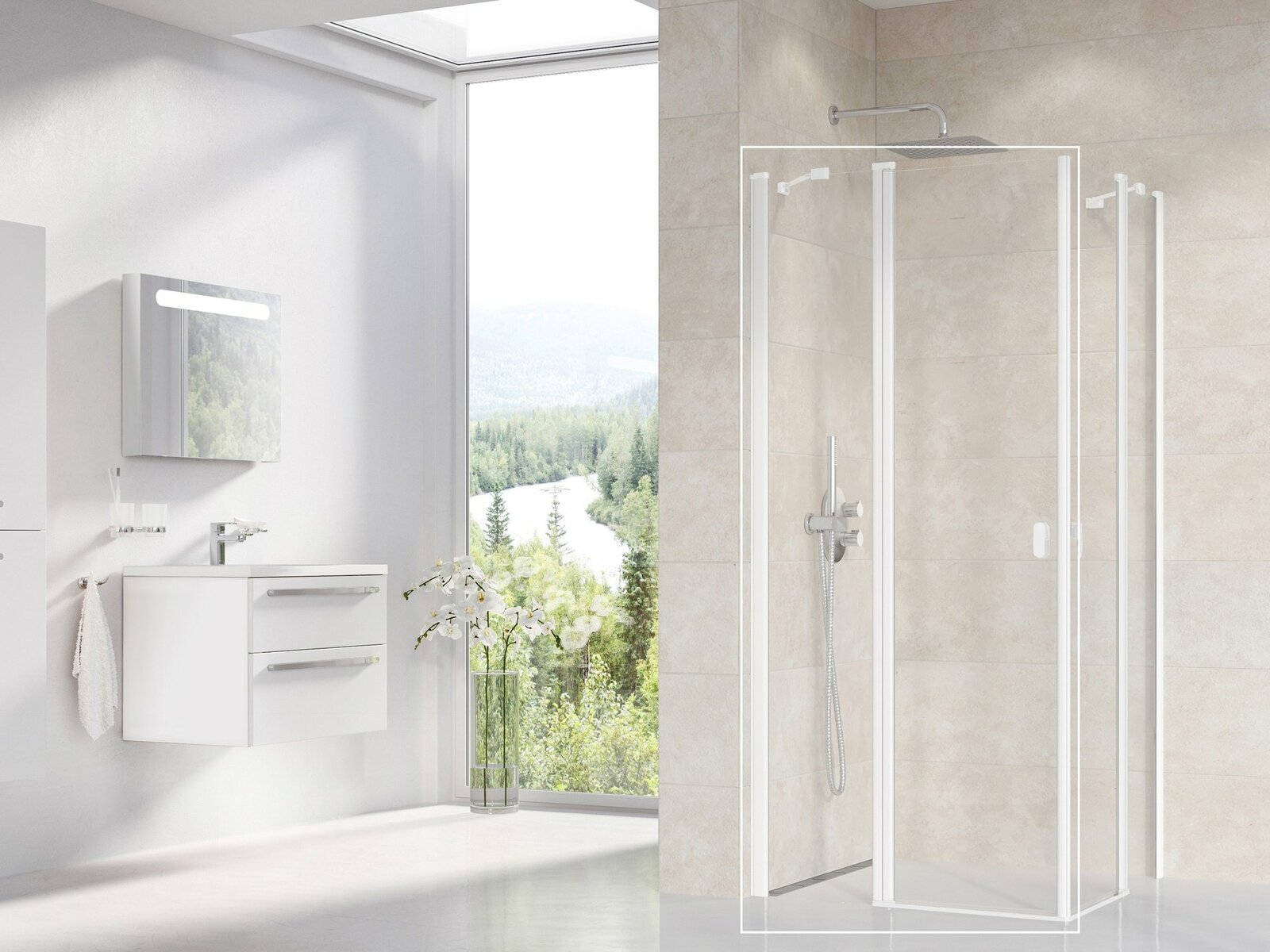 Polovina rohového sprchového koutu Chrome v provedení bílá matná a s výplní z čirého skla s ochrannou vrstvou Ravak AntiCalc®. Pro druhou polovinu rohového sprchového koutu se výrobek kombinuje s CRV1, CRV2 nebo CPS. Pantový systém otevírání.- rozměr: 80 cm (1/2 sprchového koutu)