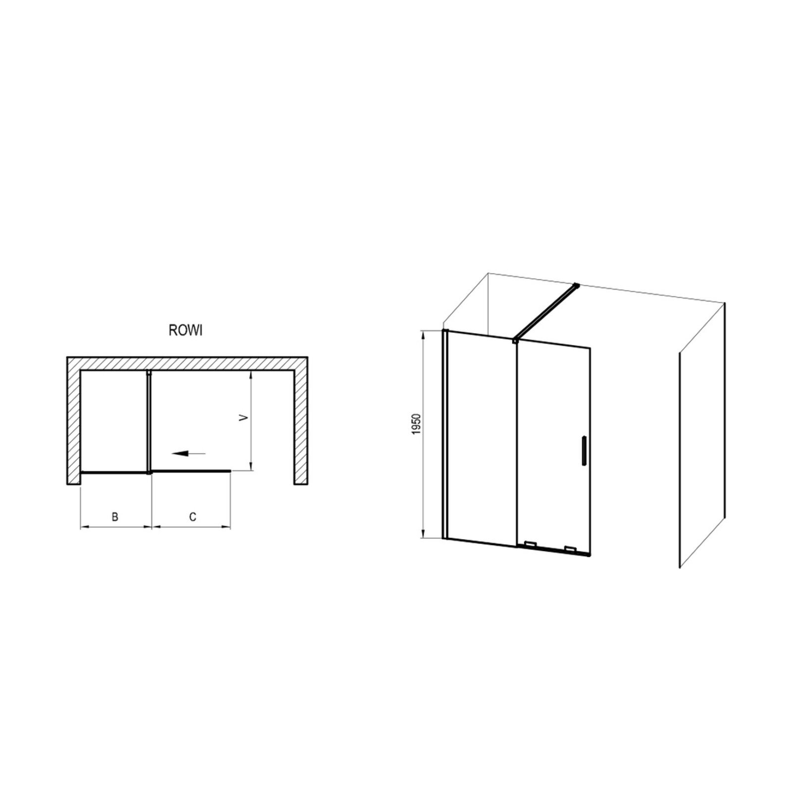 Sprchový kout Ravak Roll 100 Walk-In, černá/transparent, X9WVA0300Z1