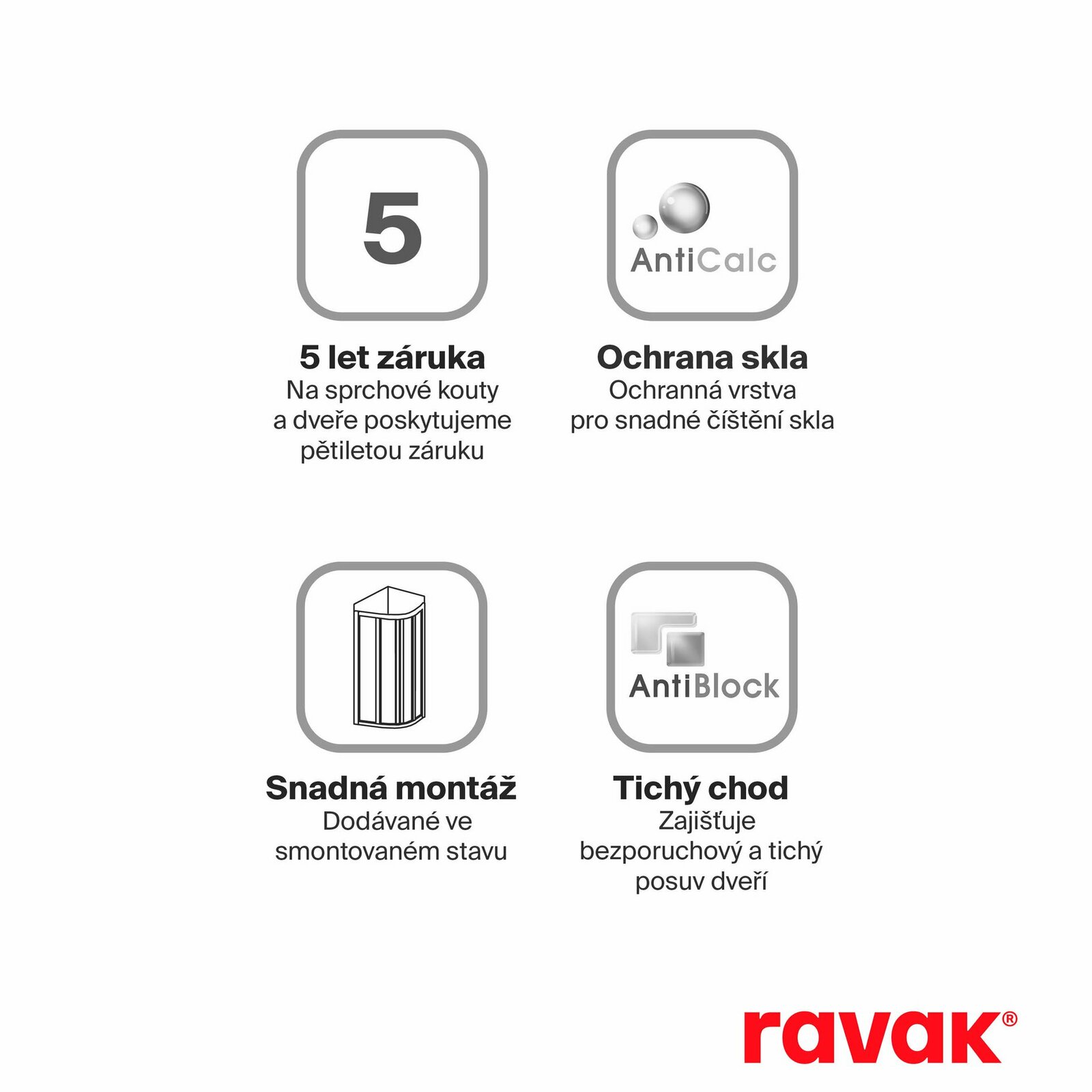 Rohový sprchový kout Supernova v černém provedení a s výplní z čirého skla s ochrannou vrstvou Ravak AntiCalc®. Posuvný systém otevírání. Výrobek je složen ze sprchových dveří a pevné stěny.