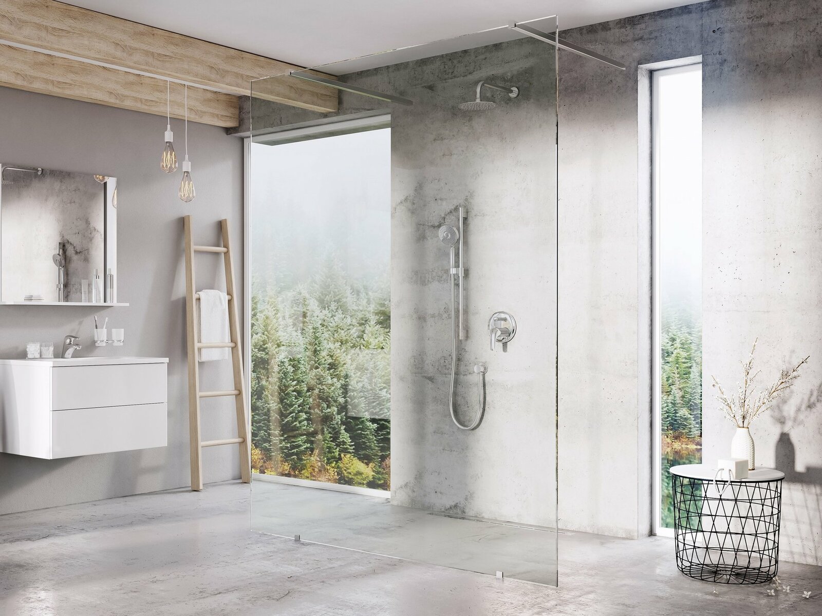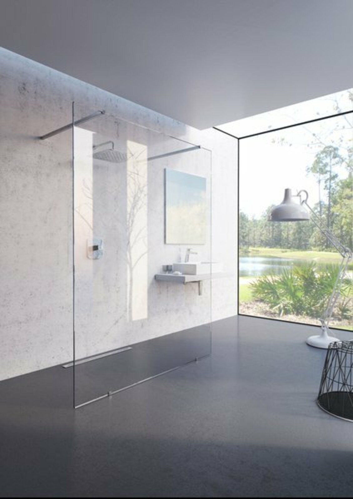 - výška skleněné pevné stěny: 200 cm