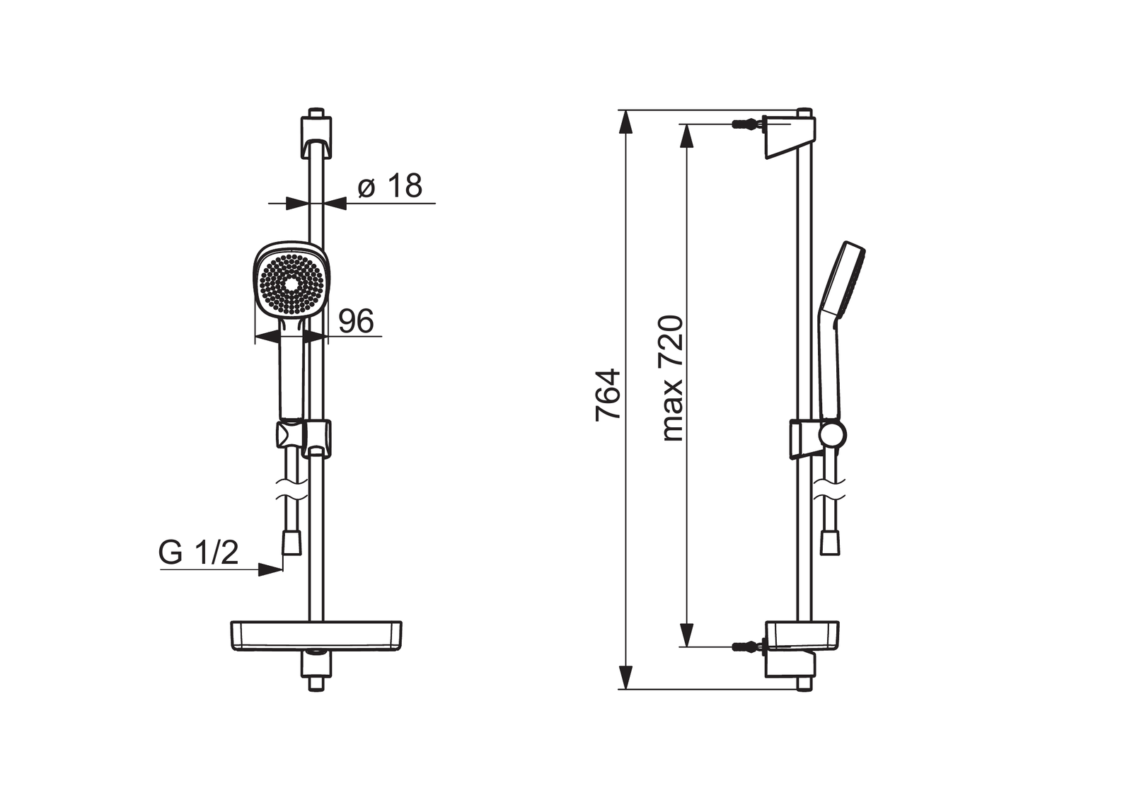 - Ruční sprcha; Sprchová tyč; Sprchová tyč s nastavitelnou roztečí úchytů; Mýdelník; Sprchová hadice (1750 mm); Technologie proti usazeninám (snadno se čistí)
