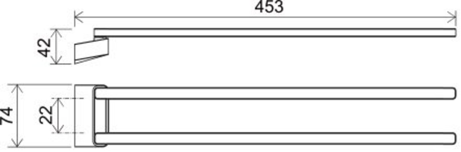 Otočný držák ručníků 10°. V černém provedení.- rozměr: 42 cm, dvojitý, otočný