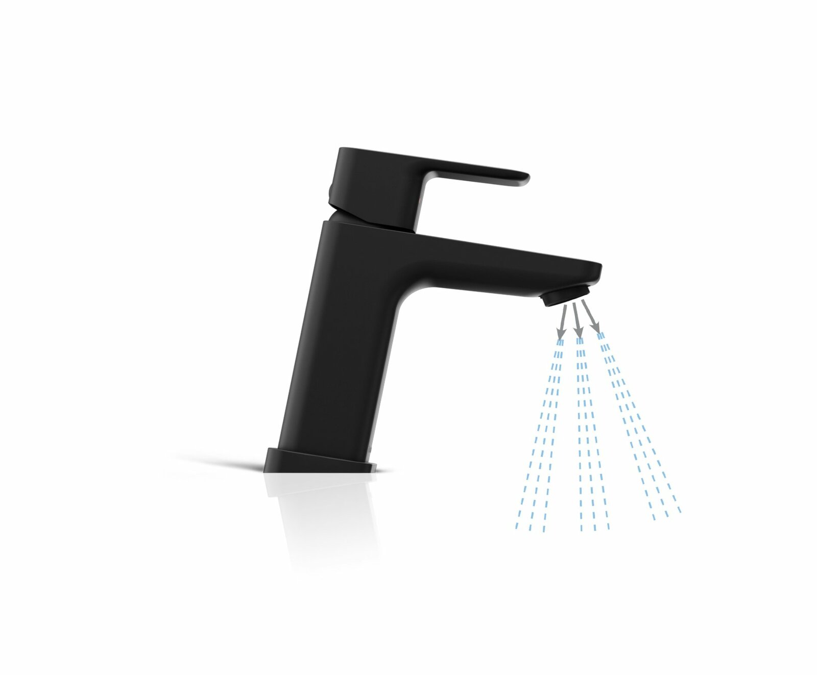 Stojánková umyvadlová baterie 10° Free, bez výpusti. V černém provedení. Perlátor s funkcí FlexiFlow.- výška baterie: 145 mm - Standard Zone, standardní