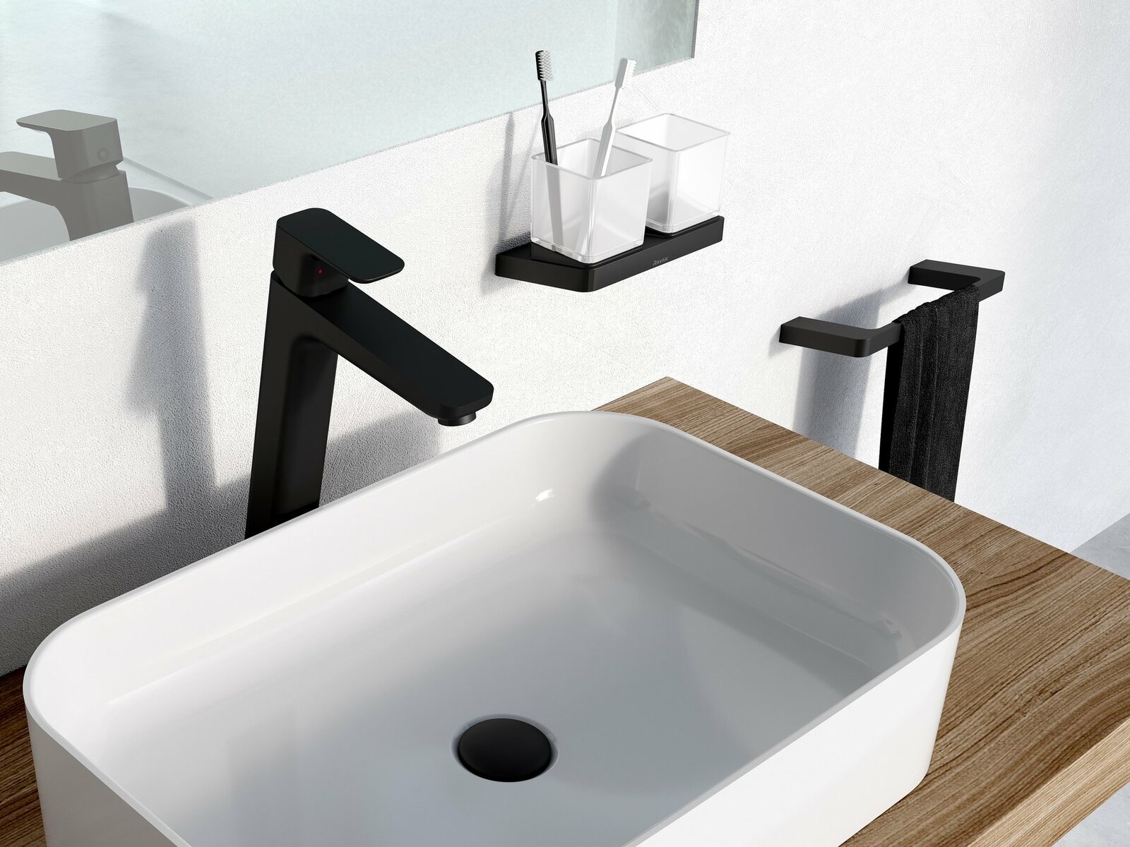 Stojánková umyvadlová baterie 10° Free, bez výpusti. V černém provedení. Perlátor s funkcí FlexiFlow.- výška baterie: 333 mm - ExtraComfort Zone, extra prodloužená