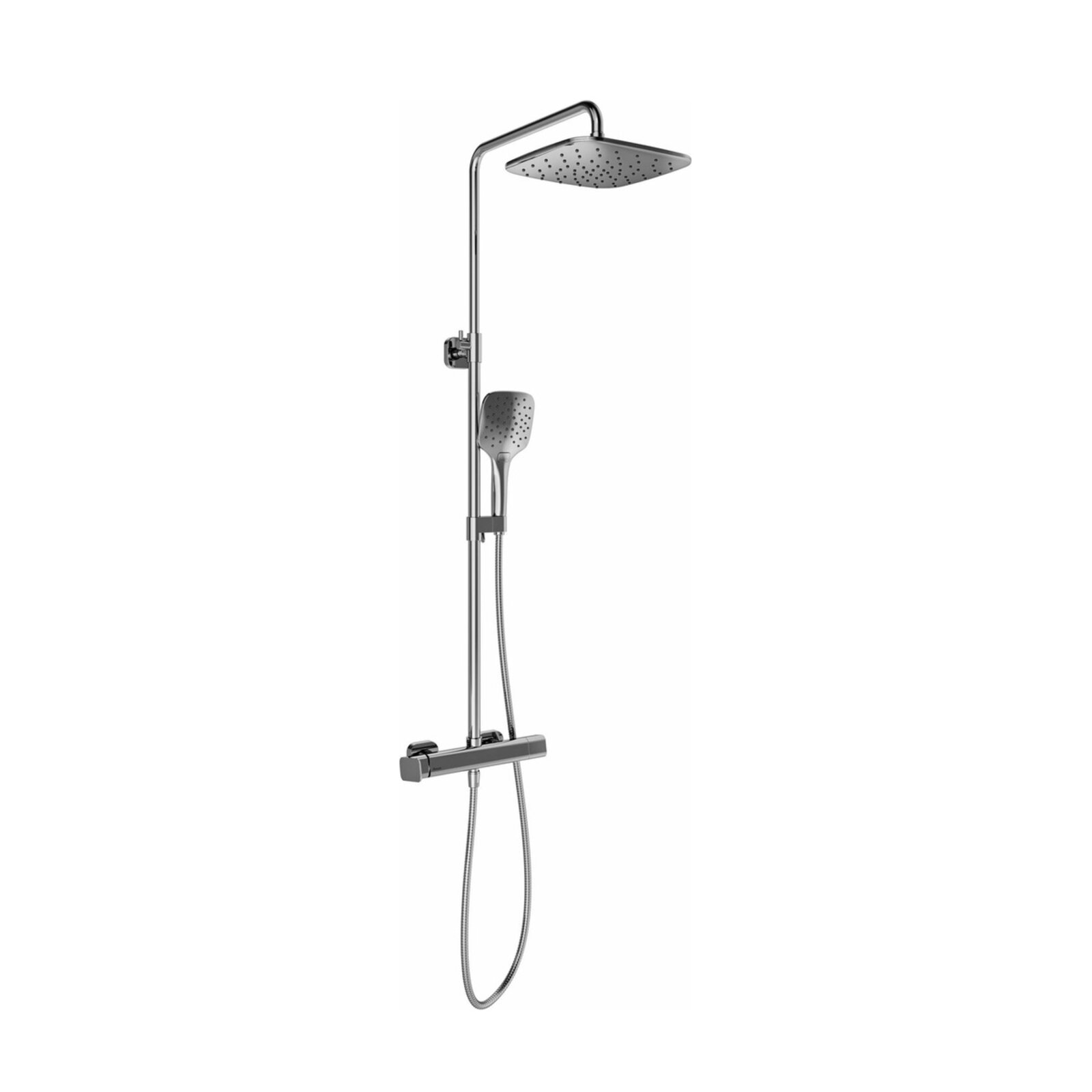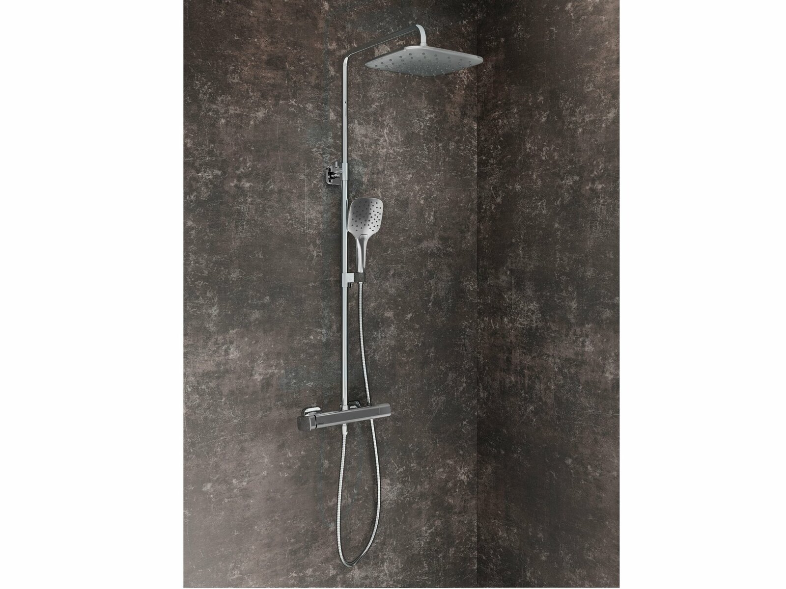 Sprchový sloup se instaluje na stěnu sprchového koutu. Je možné ho výškově přizpůsobit pomocí dotahovací matice - jednoduše ručně, kdykoli po montáži. Přepínačem lze překlikávat proud vody mezi hlavovou a ruční sprchou nebo do středové polohy.
