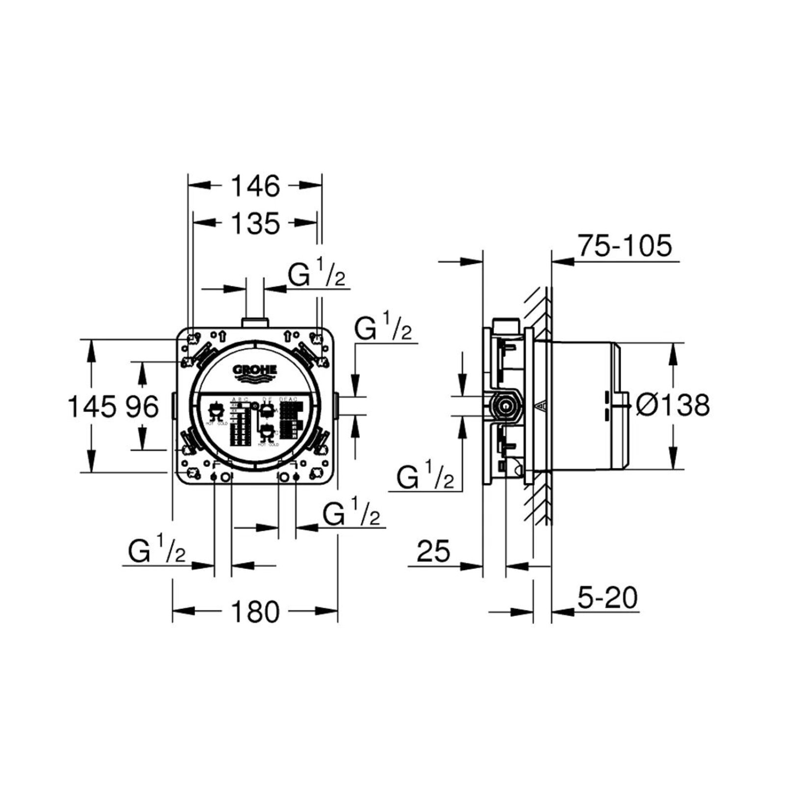 Toto těleso je možné instalovat pod sérii SmartControl i podomítkové baterie z jiných sérií Grohe. Těleso je možné nastavit až pro 3 spotřebiče. Jde nastavit i pro odběr jednoho nebo dvou spotřebičů. 3 výstupy DN 15, 2 vstupy dole DN 15, instalační hloubka 75 - 105 mm, spojovací jednotka, předmontovaný spouštěč, stabilní vestavný box a ochranný obal, připravené upevňovací body pro mokré i suché obložení, těsnění, jedná se pouze o těleso bez pohledové ovládací jednotky.