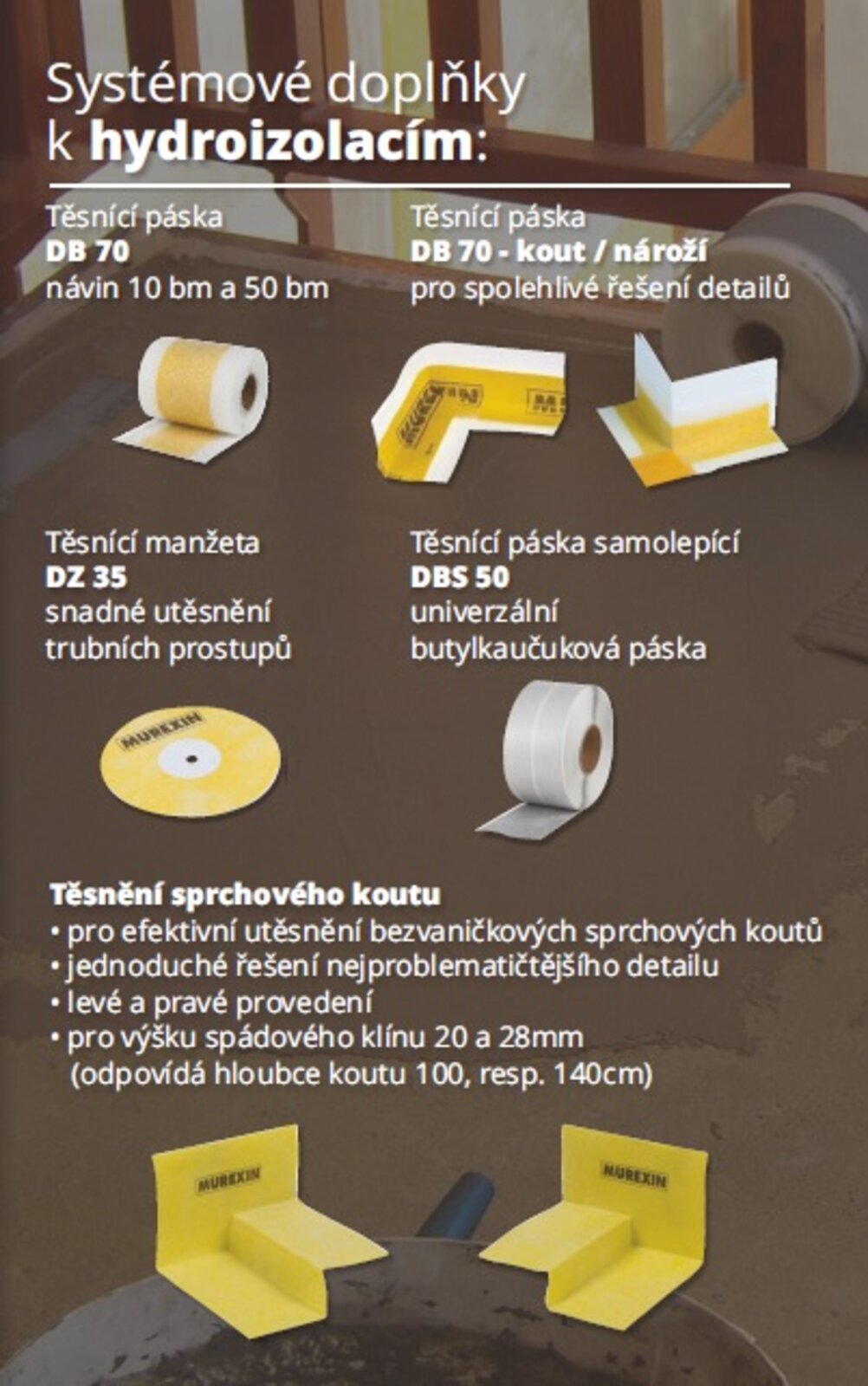 Elastická těsnící páska vyztužená tkaninou, se střední částí bez tkaniny. Výztužná tkanina přesahuje pásku po obou stranách, což umožňuje snadné zapracování do hydroizolačních folií, páska je oboustraně kašírovaná, trvale pružná, vodoodpudivá, vodonepropustná, odolná zředěným kyselinám, louhům a solným roztokům. Pro použití v interiéru i exteriéru, na stěny a podlahy. Vhodná do bazénů. Součástí systému jsou i tvarované komponenty pro utěsnění vnitřních a vnějších rohů a manžety k utěsnění prostupujícího potrubí.