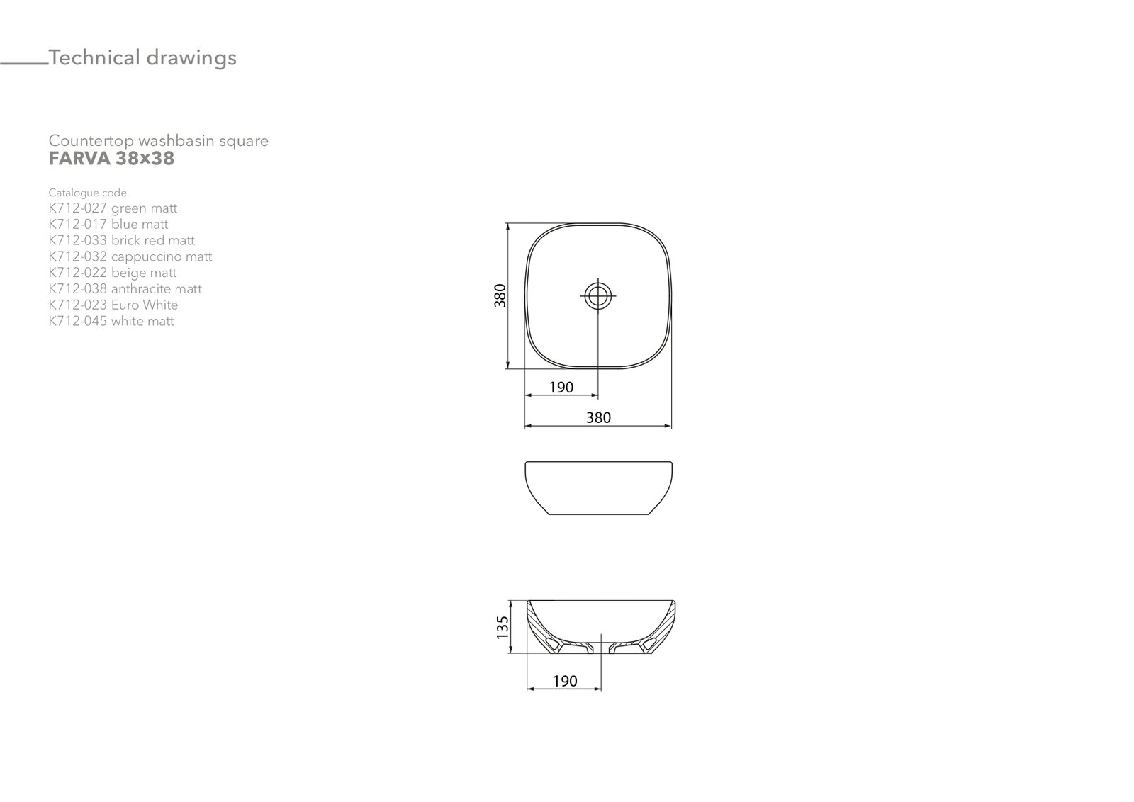 Umyvadlo Cersanit Farva 38 na desku čtvercové, cihlová mat, K712-033