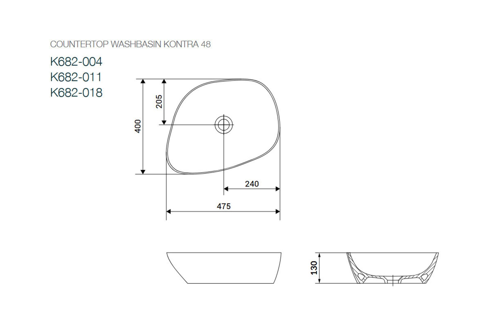 Umyvadlo Cersanit Kontra 48 na desku bílé matné nepravidelné, K682-011