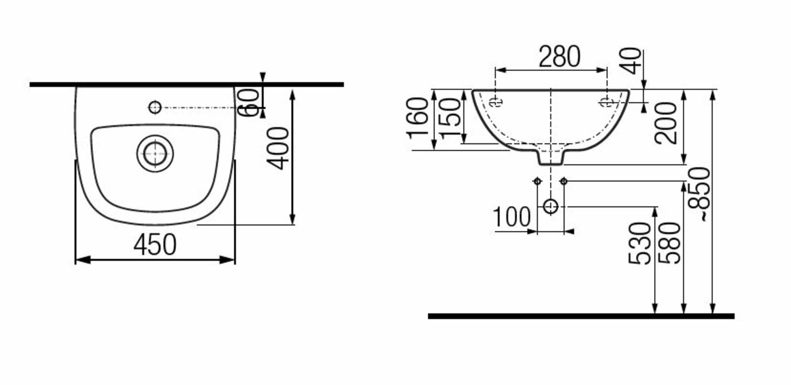 Umyvadlo Jika Euroline N 45 závěsné bílé, H8157900001041