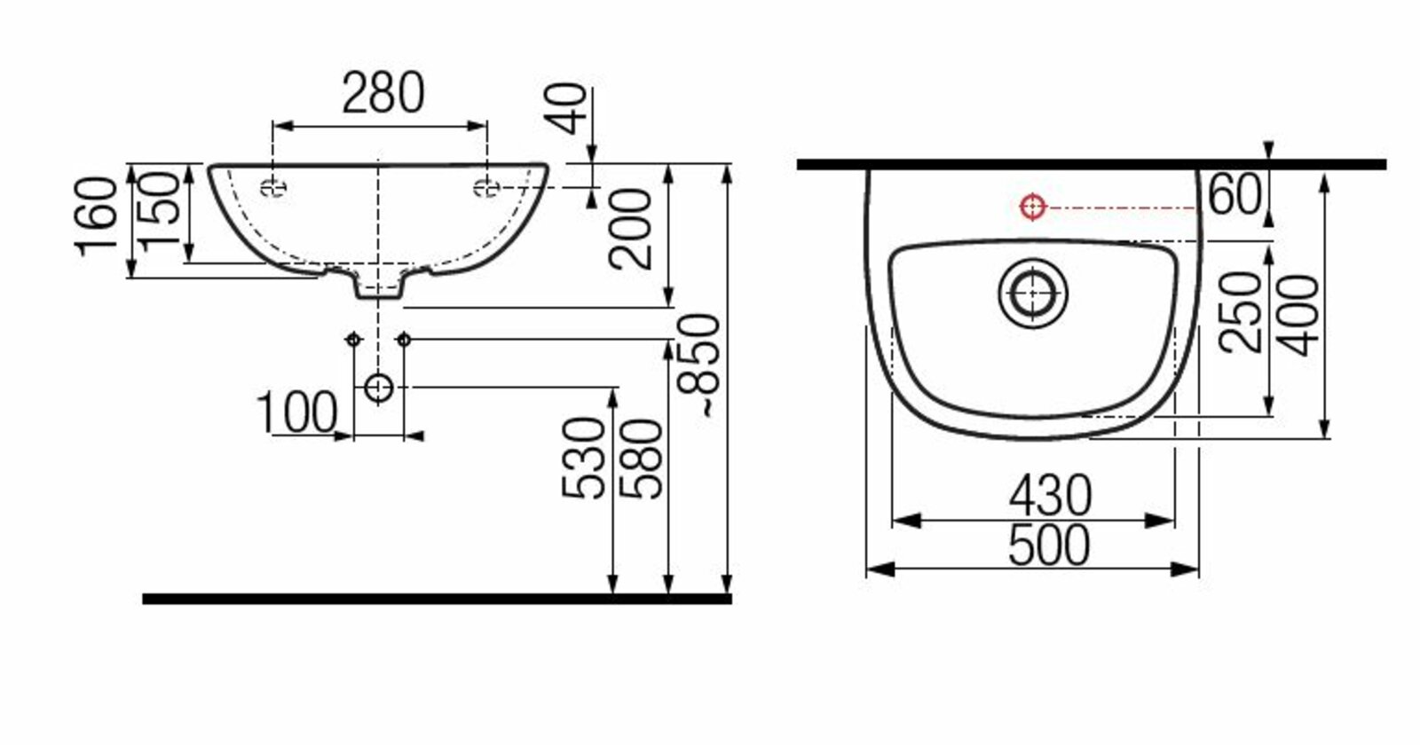 Umyvadlo Jika Euroline N 50 závěsné bílé, H8107900001041