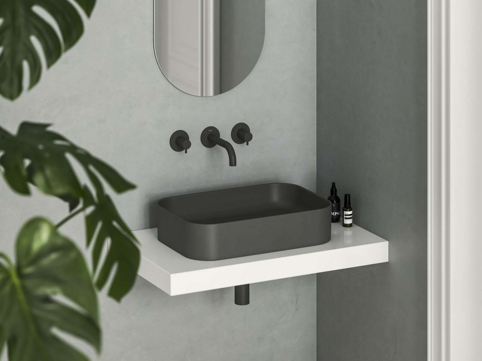 Tenkostěnné keramické umyvadlo Ceramic Slim R k instalaci na desku nebo skříňku, bez přepadu. Antracit provedení.- rozměry (šxhxv): 55 x 37 x 12 cm