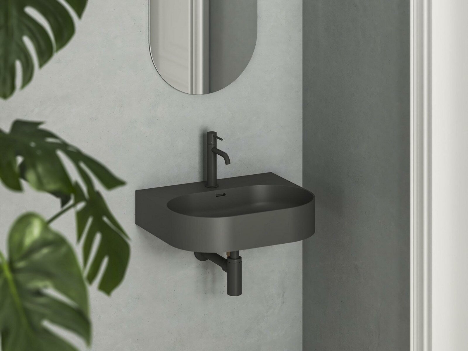 Tenkostěnné keramické umyvadlo Ceramic Slim Wall O N k instalaci na zeď, desku nebo skříňku, s přepadem. Antracit provedení.- rozměry (šxhxv): 55 x 45 x 12 cm