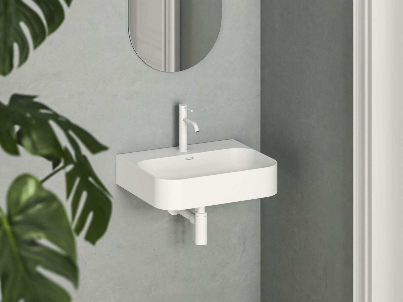 Tenkostěnné keramické umyvadlo Ceramic Slim Wall R N k instalaci na zeď, desku nebo skříňku, s přepadem. Bílé matné provedení.- rozměry (šxhxv): 55 x 45 x 12 cm