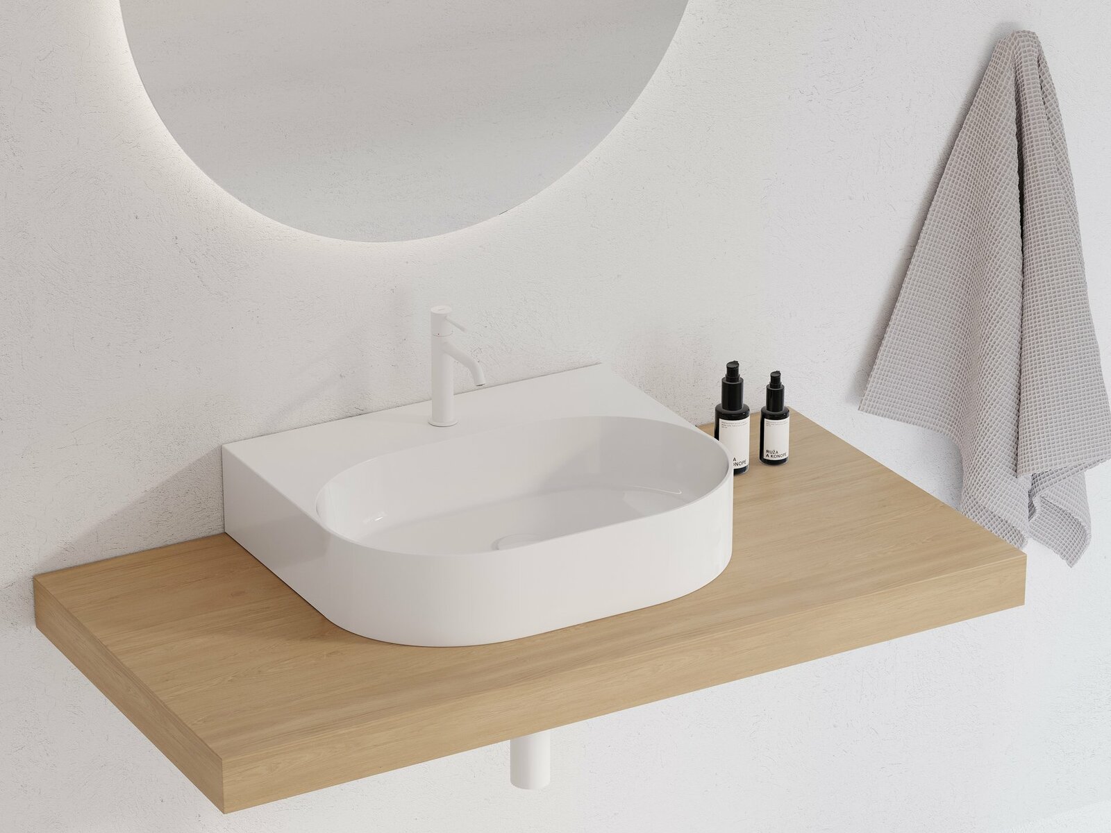 Umyvadlo Ravak Ceramic Slim Wall O 55 na desku tenkostěnné, s otvorem pro baterii, s přepadem, bílá, XJX01155004