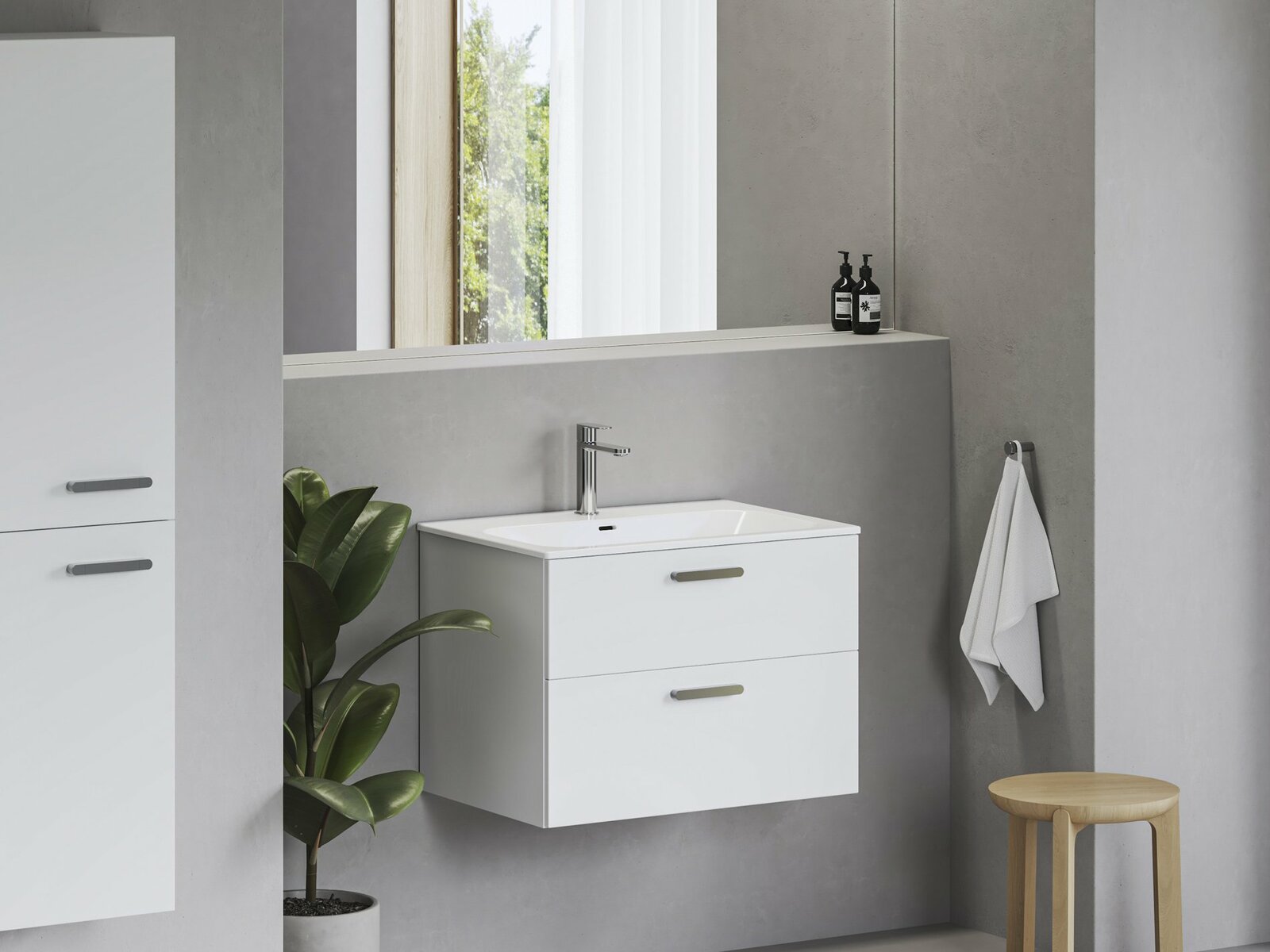 Součástí nejširšího designově sladěného konceptu na trhu. Keramické umyvadlo Chrome Slim lze instalovat pouze na skříňku pod umyvadlo SD Chrome II 70. Montážní sada (připojovací hmoždinky, vruty, atd.) včetně krytky přepadu je součástí dodávky.