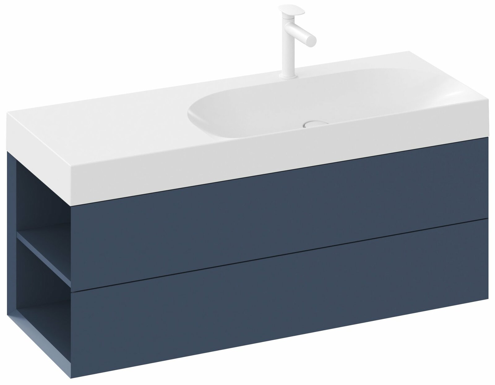 Nábytkové umyvadlo Lite z litého mramoru k instalaci na zeď nebo k zapuštění do závěsné skříňky, bez přepadu. Bílé provedení. Levá varianta. S otvorem pro umyvadlovou baterii.- rozměry (šxhxv): 120 x 45 x 10 cm