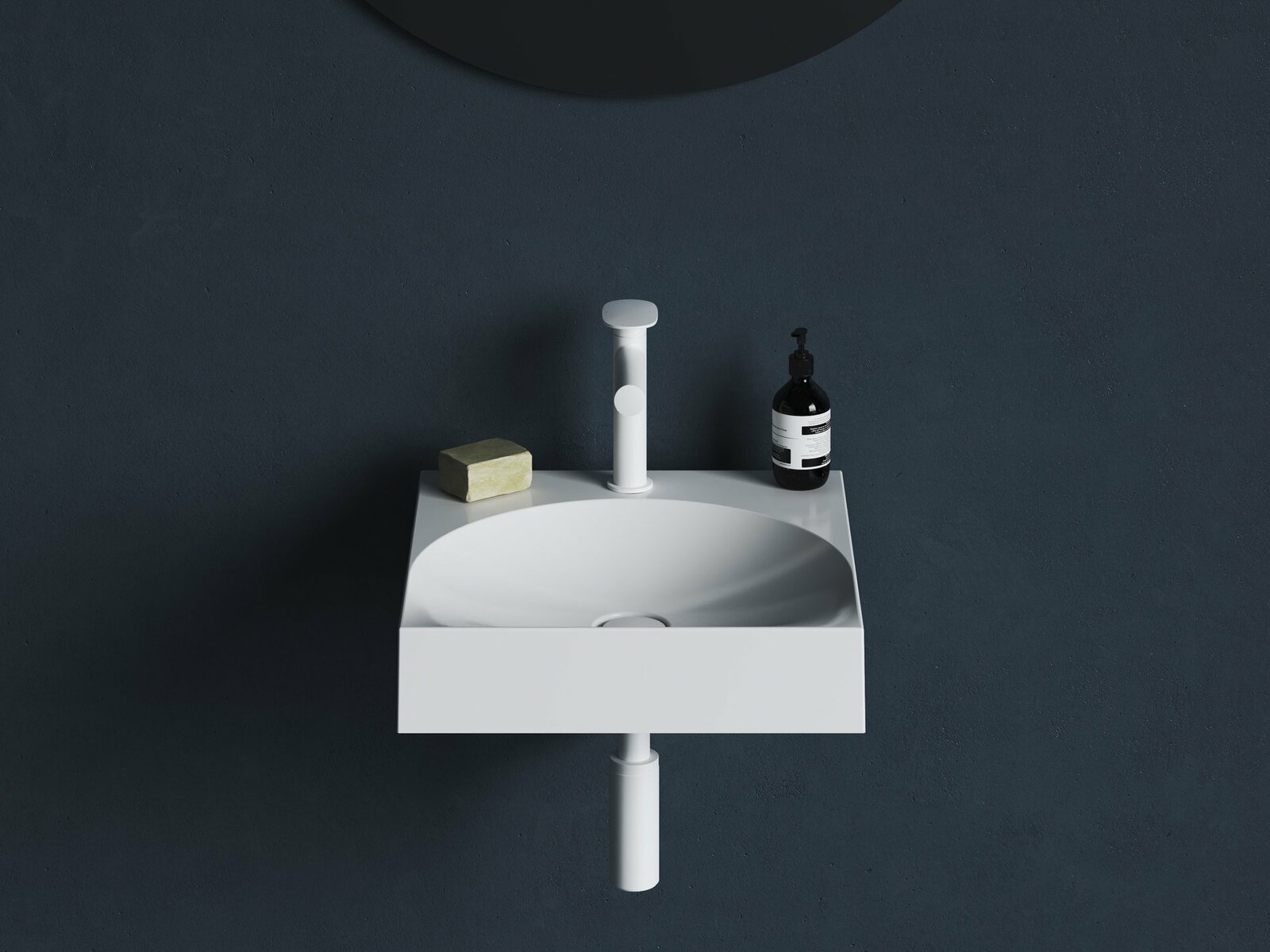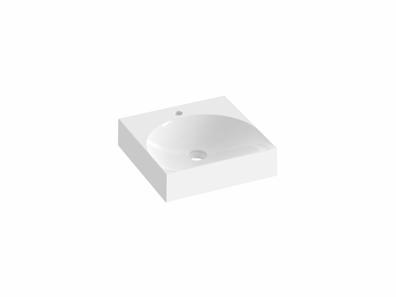 Závěsné umyvadlo Lite z litého mramoru k instalaci na zeď, bez přepadu. Bílé provedení. S otvorem pro umyvadlovou baterii.- rozměry (šxhxv): 45 x 45 x 10 cm