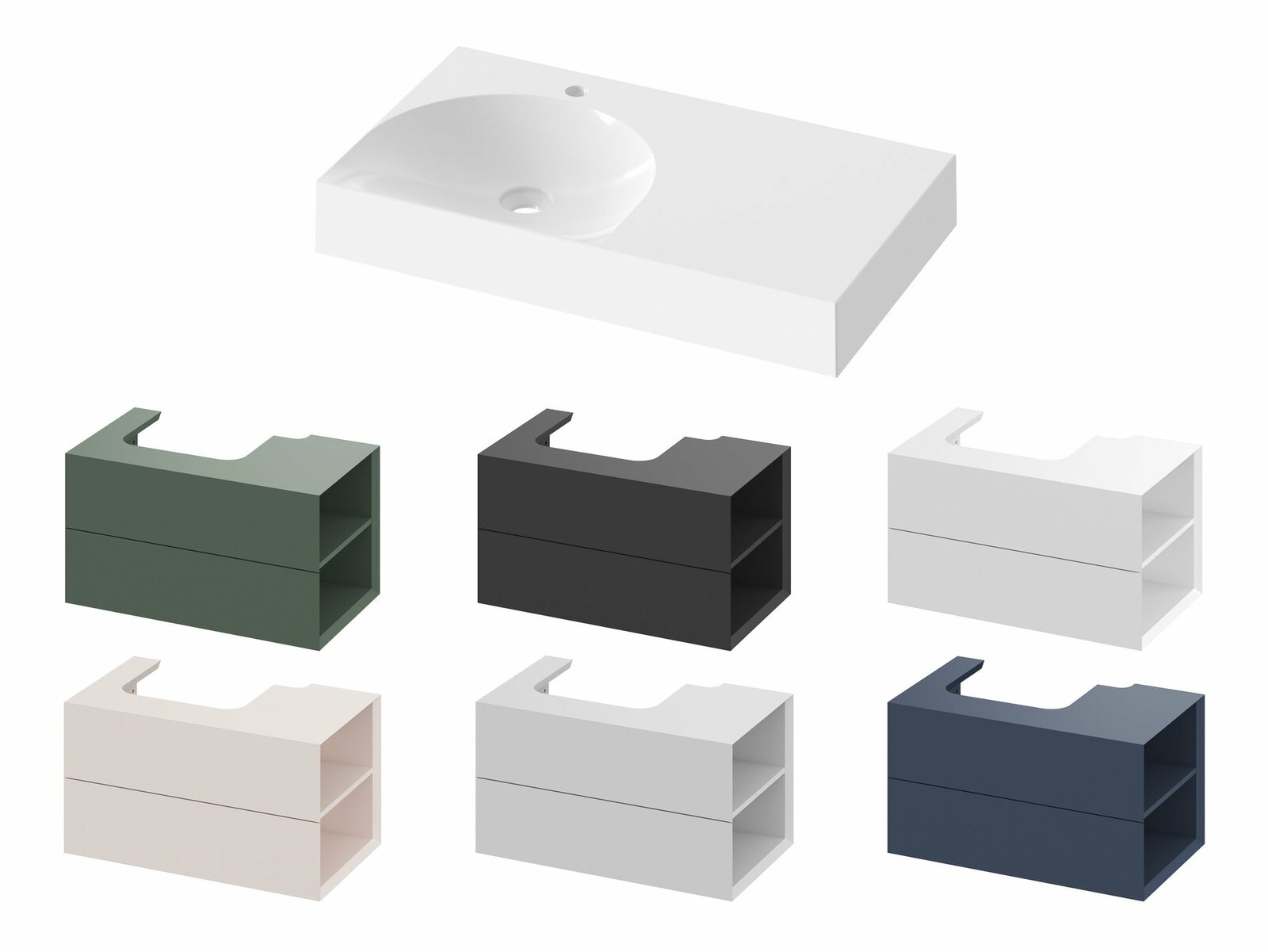Nábytkové umyvadlo Lite z litého mramoru k instalaci na zeď nebo k zapuštění do závěsné skříňky, bez přepadu. Bílé provedení. Pravá varianta. S otvorem pro umyvadlovou baterii.- rozměry (šxhxv): 80 x 45 x 10 cm