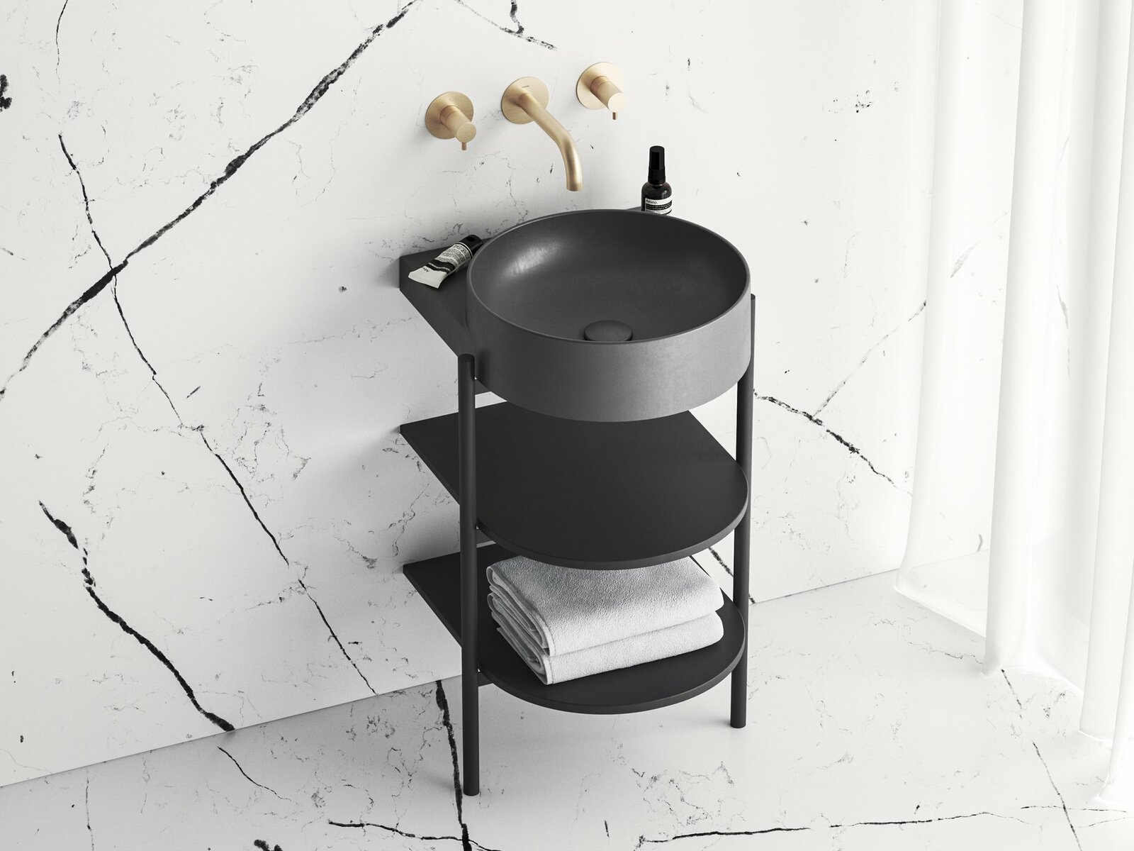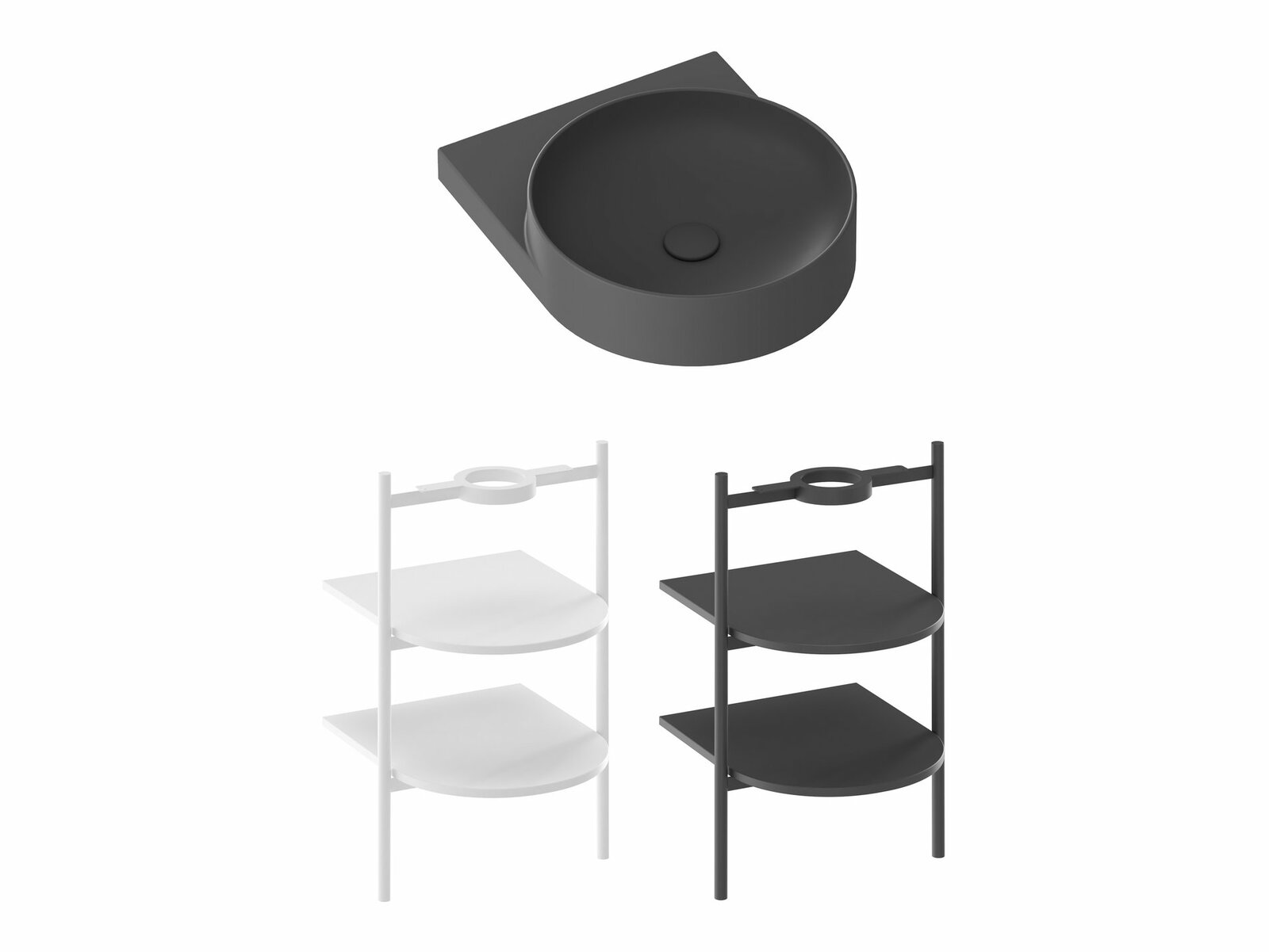 - doplňky k dokoupení: konzole Yard 40, konstrukce pod umyvadlo CS Yard 40, umyvadlová pileta pevná, keramická pileta Flat antracit, umyvadlový sifon, podomítková umyvadlová baterie