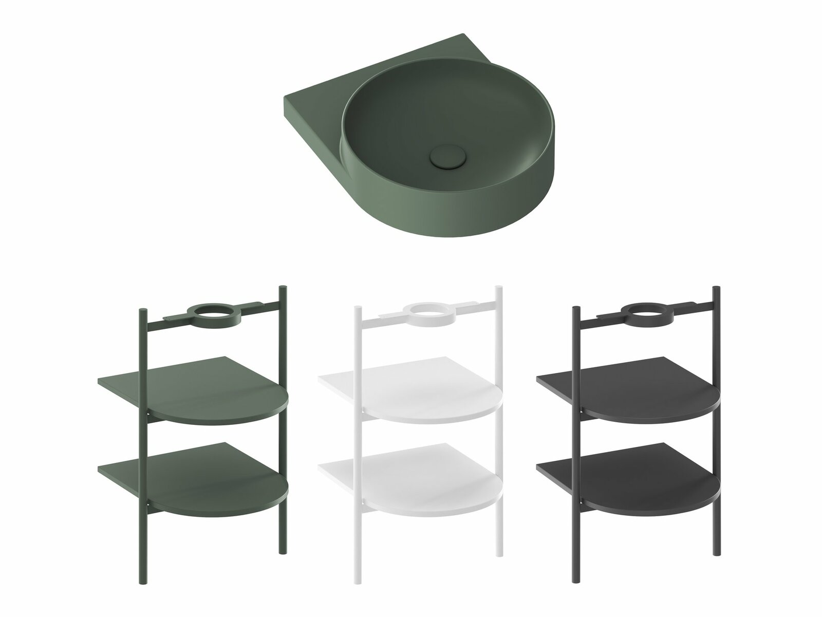 - doplňky k dokoupení: konzole Yard 40, konstrukce pod umyvadlo CS Yard 40, umyvadlová pileta pevná, keramická pileta Flat Grey Green, umyvadlový sifon, vodovodní baterie