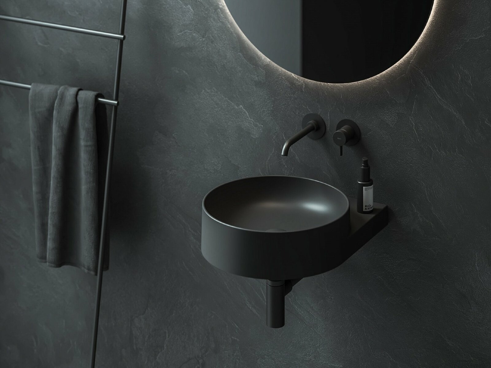 Tenkostěnné keramické umyvadlo Yard k instalaci na konzoli Yard, bez přepadu. V černém matném provedení. Bez otvoru - pro kombinaci s umyvadlovou podomítkovou baterií.- rozměry (šxhxv): 40,5 x 50 x 12,5 cm