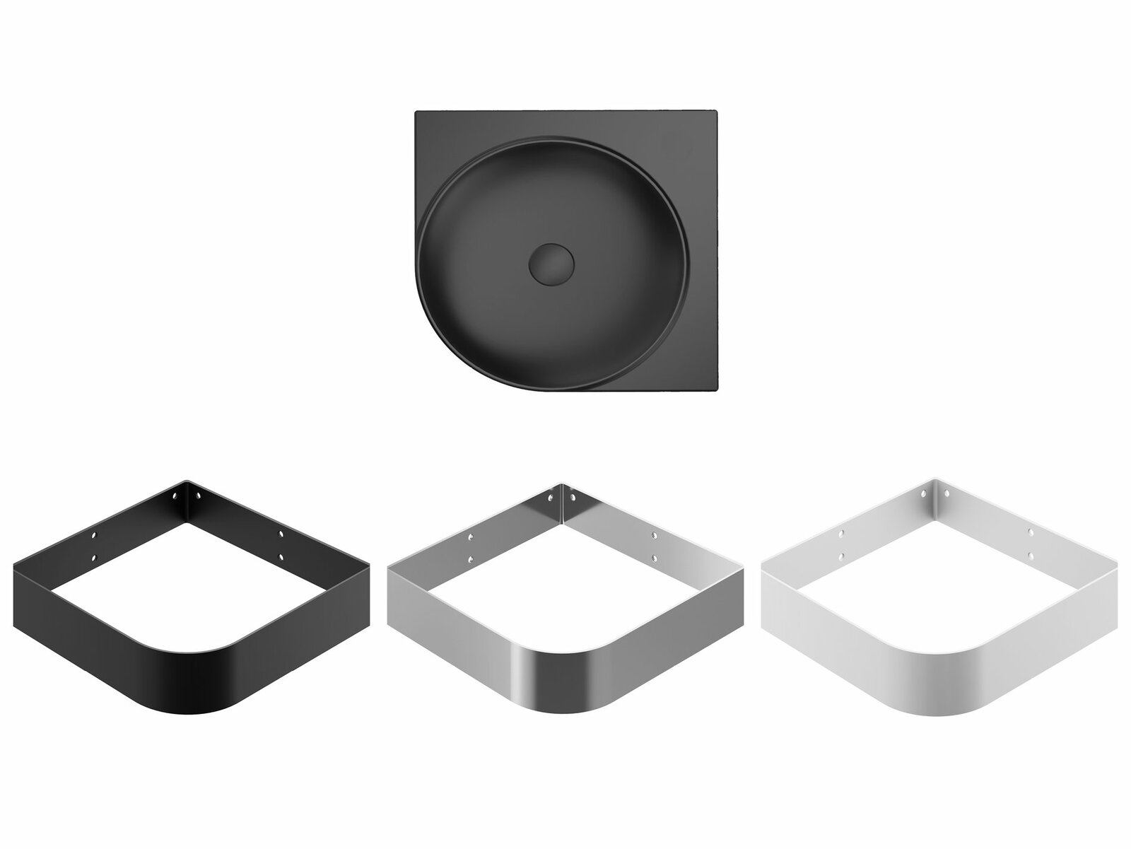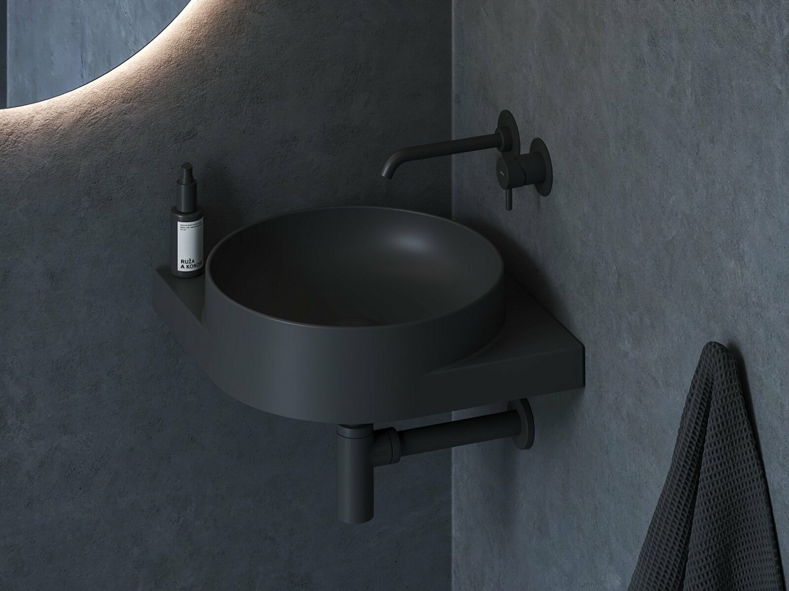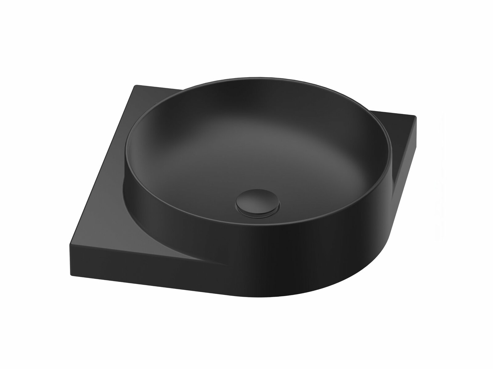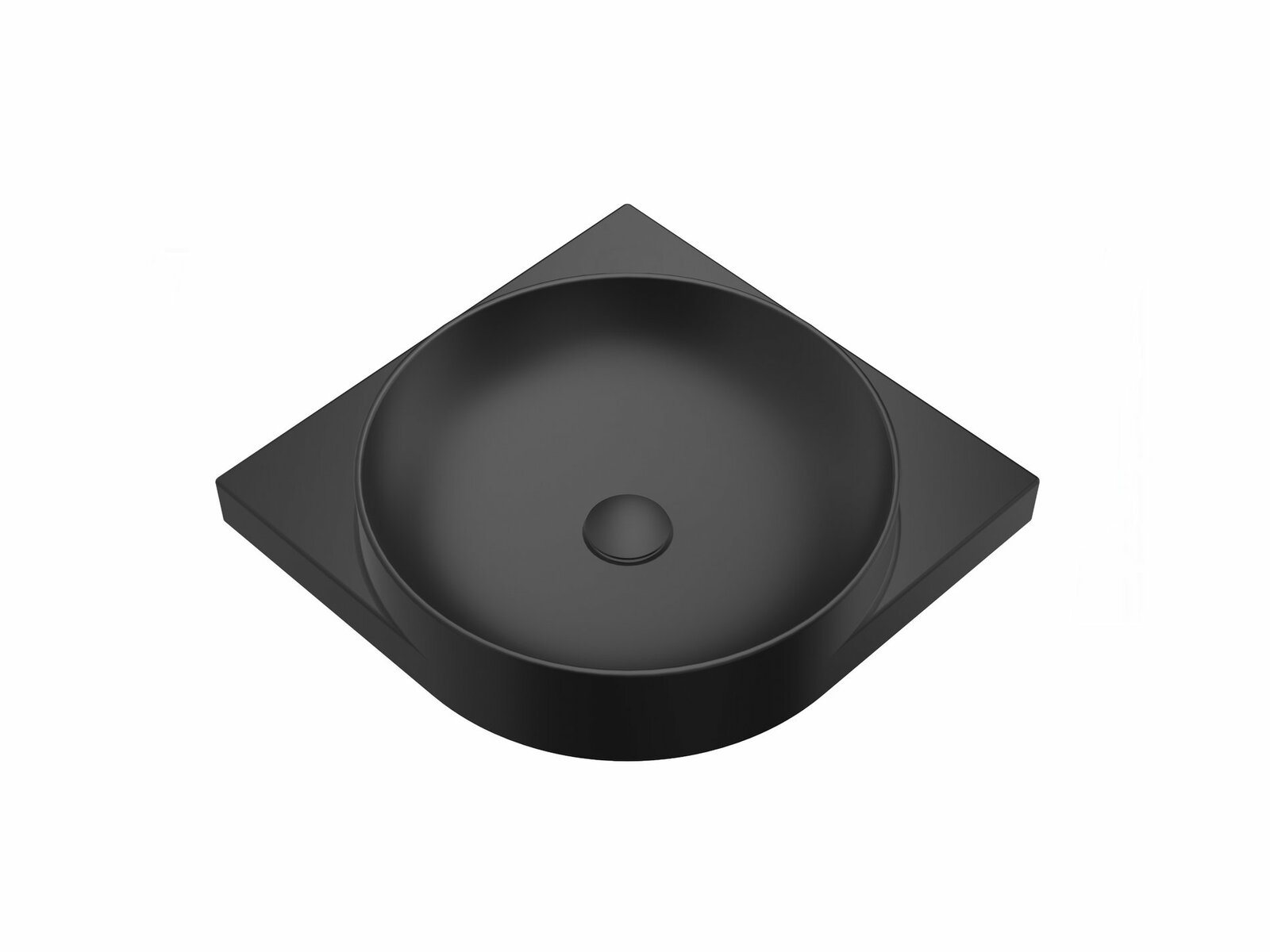 Tenkostěnné keramické rohové umyvadlo Yard k instalaci na konzoli Yard, bez přepadu. V černém matném provedení. Bez otvoru - pro kombinaci s umyvadlovou podomítkovou baterií.- rozměry (šxhxv): 45 x 45 x 12,5 cm