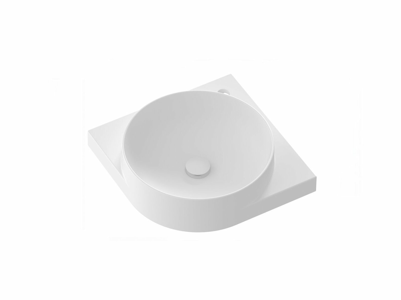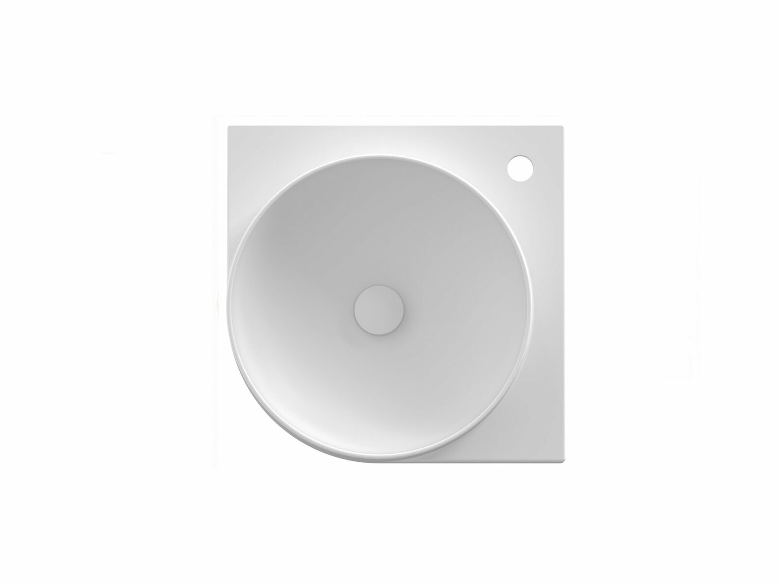 Tenkostěnné keramické rohové umyvadlo Yard k instalaci na konzoli Yard, bez přepadu. Bílé matné provedení. S otvorem pro stojánkovou baterii.- rozměry (šxhxv): 45 x 45 x 12,5 cm