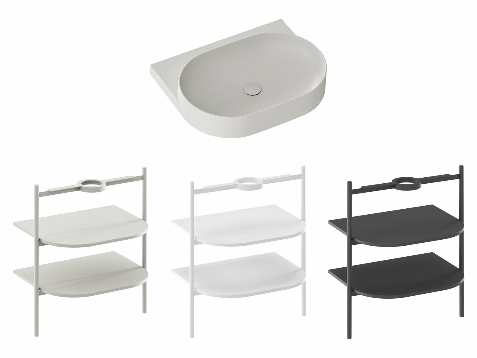 - doplňky k dokoupení: konzole Yard 60, konstrukce pod umyvadlo CS Yard 60, umyvadlová pileta pevná, keramická pileta Flat Smoke Grey, umyvadlový sifon, podomítková umyvadlová baterie