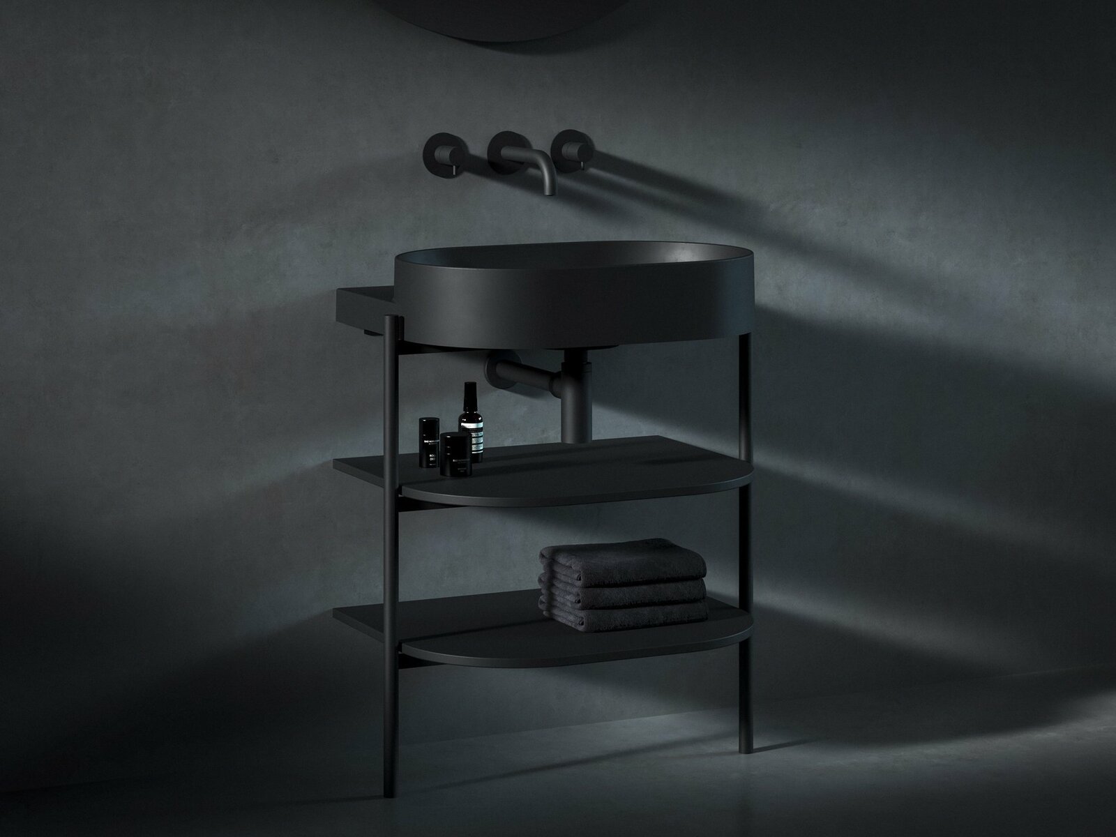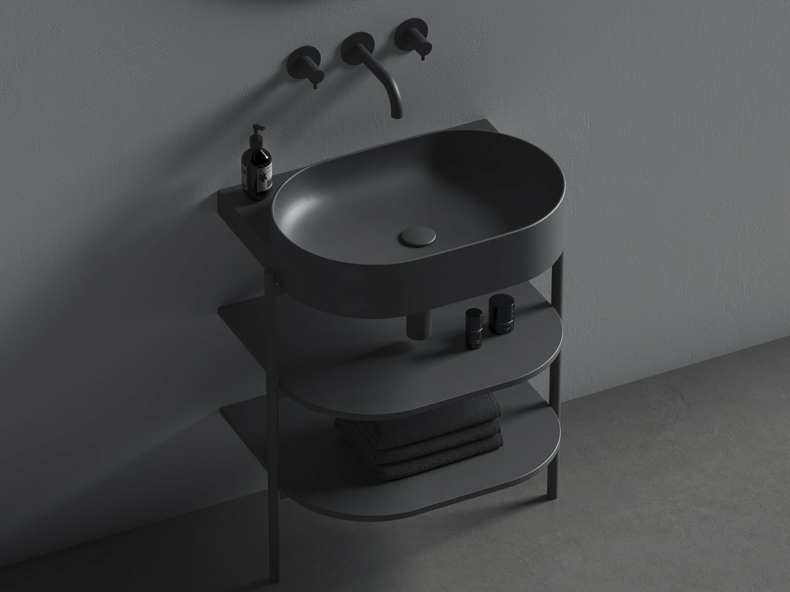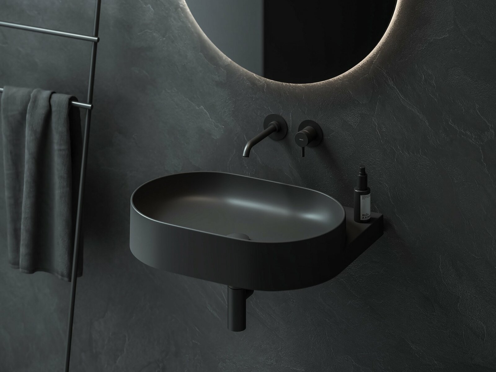 Tenkostěnné keramické umyvadlo Yard k instalaci na konzoli Yard, bez přepadu. V černém matném provedení. Bez otvoru - pro kombinaci s umyvadlovou podomítkovou baterií.- rozměry (šxhxv): 60,5 x 50 x 12,5 cm