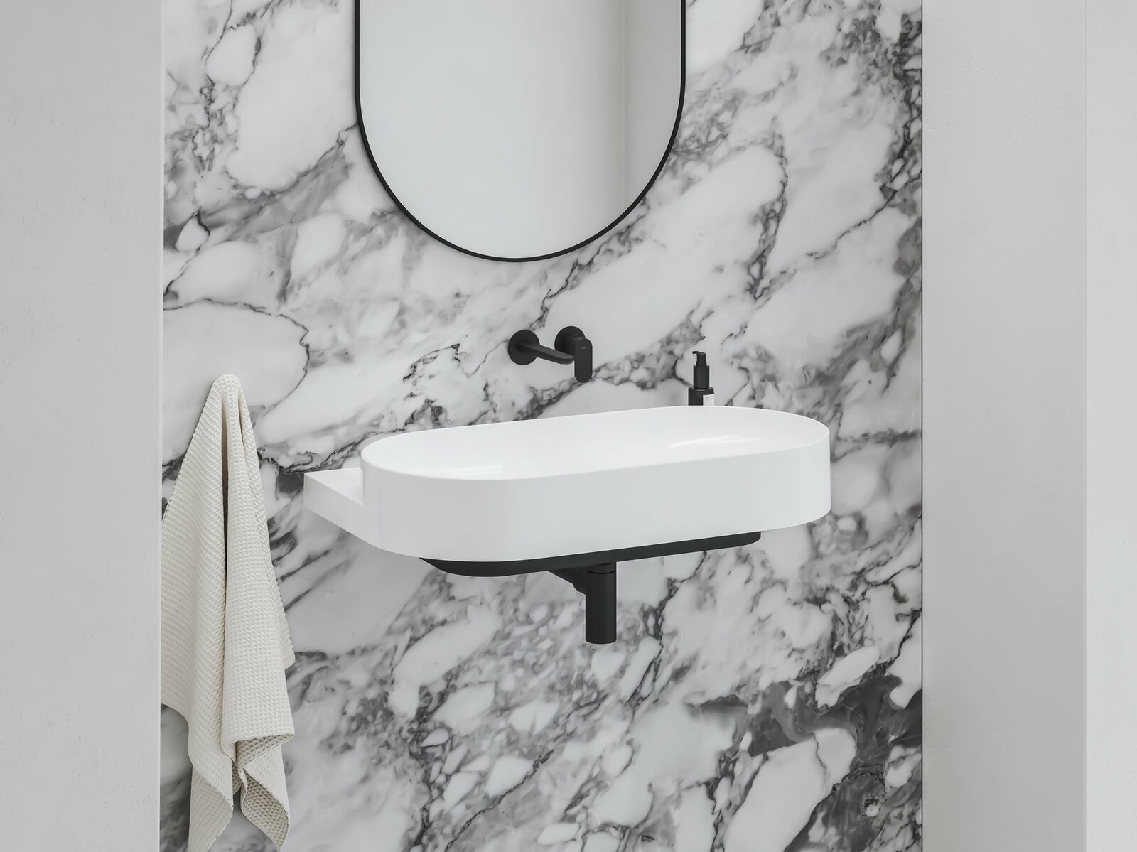 Tenkostěnné keramické umyvadlo Yard k instalaci na konzoli Yard, bez přepadu. Bílé matné provedení. Bez otvoru - pro kombinaci s umyvadlovou podomítkovou baterií.- rozměry (šxhxv): 80,5 x 50 x 12,5 cm