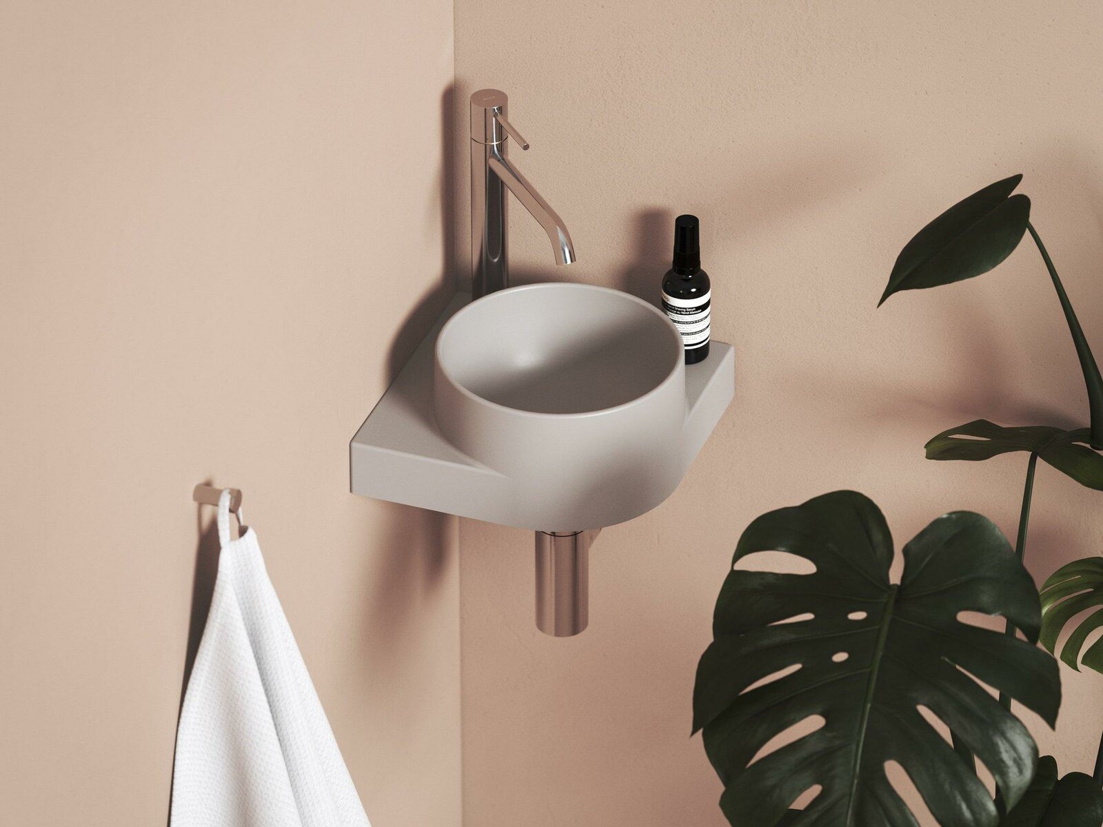 Tenkostěnné keramické rohové umývátko Yard k instalaci na konzoli Yard, bez přepadu. V provedení Smoke Grey. S otvorem pro stojánkovou baterii.- rozměry (šxhxv): 28 x 28 x 12,5 cm
