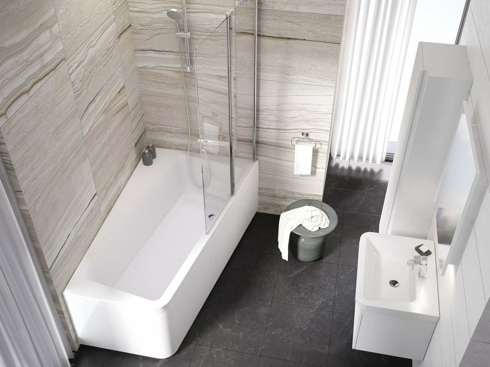 Asymetrická vana 10° kombinuje pohodlí vany a praktičnost sprchového koutu. Pootočením vzniká prostor, který můžete využít jako sedátko pro pohodlné sprchování nebo pro odložení kosmetiky. Pravá varianta.- rozměry: 160x95 cm