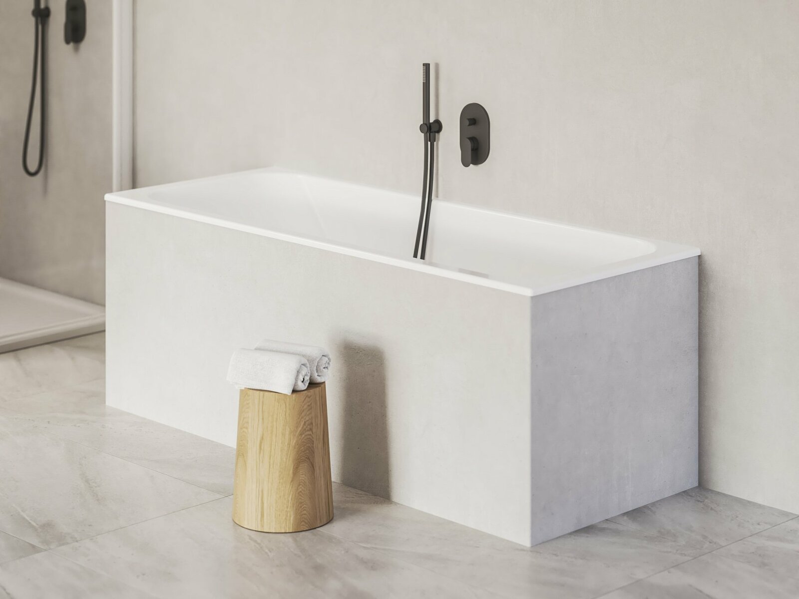 K vaně rozměru 170 x 75 cm lze dokoupit čelní i boční panel z MDF desky v bílé barvě. Systém přichycení čelního panelu je součástí panelu, není třeba dokupovat panelkit!