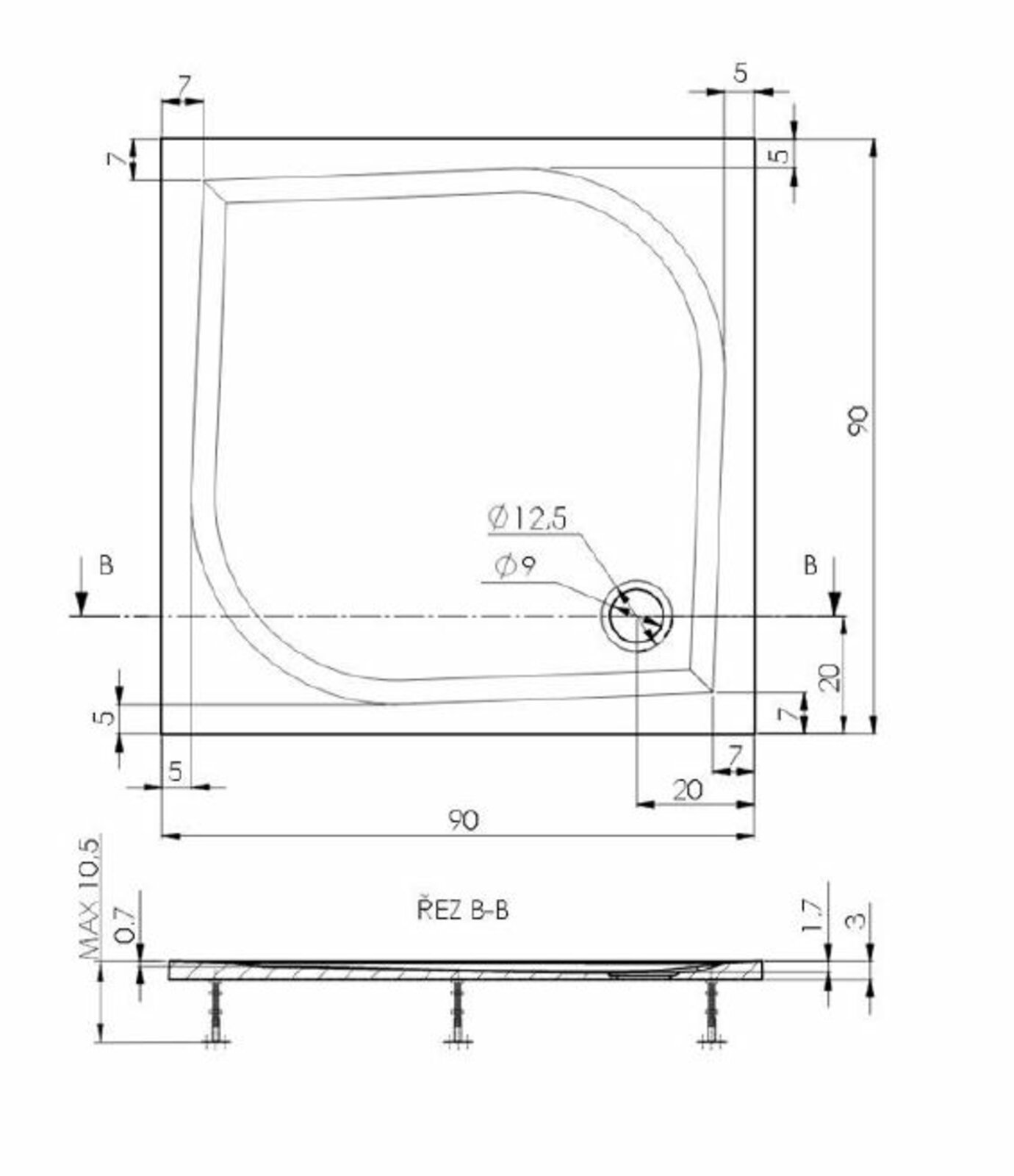 Čtvercová sprchová vanička DRACO 90x90 z litého mramoru se vyrábí v provedení s hladkým povrchem. Vyniká elegantním plochý designem. Vysoká pevnost a stabilita předurčuje k umístění nejen do domácích koupelen.