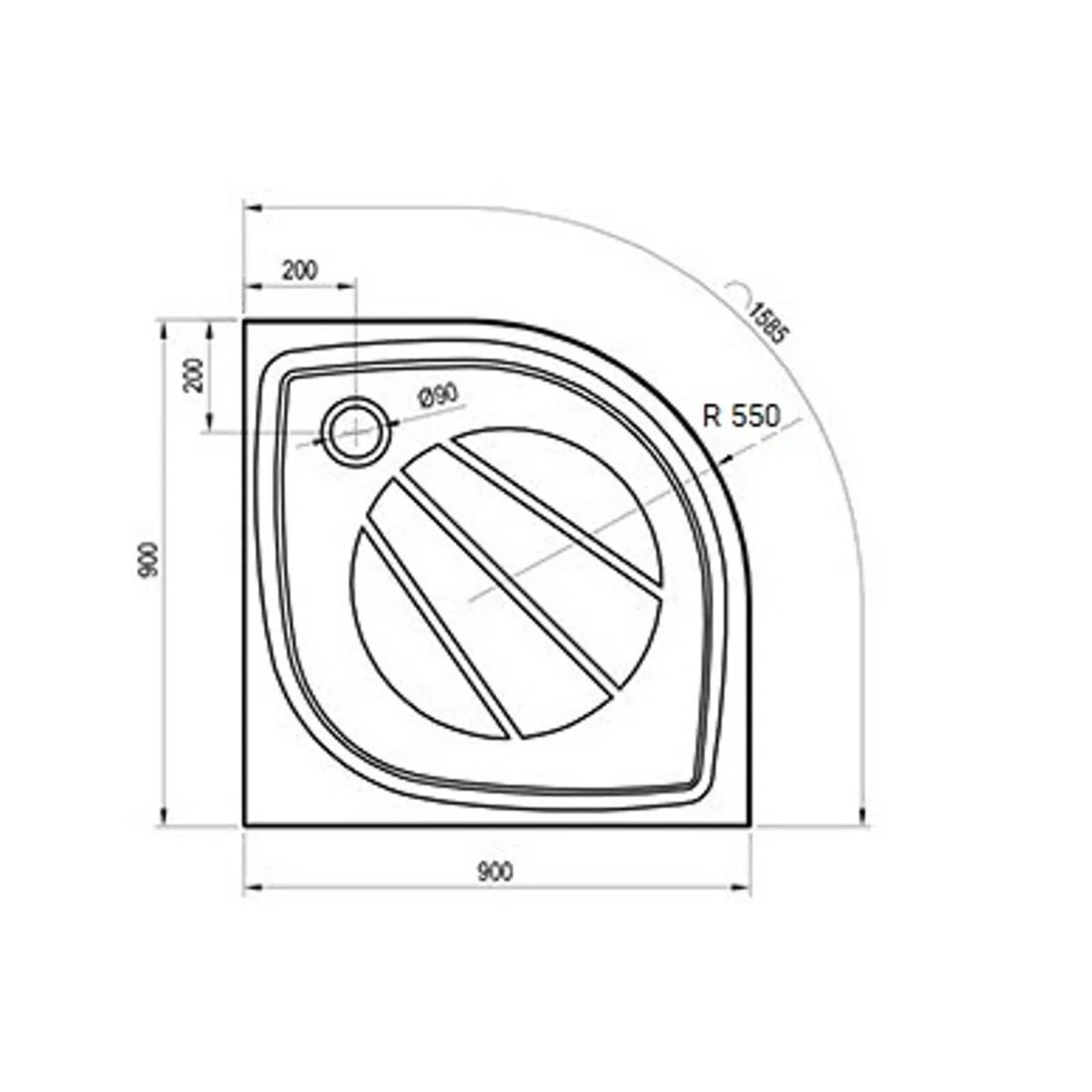 Vanička EBS Urban 90x90 čtvrtkruhová, litá, bílá, URBAN90R55