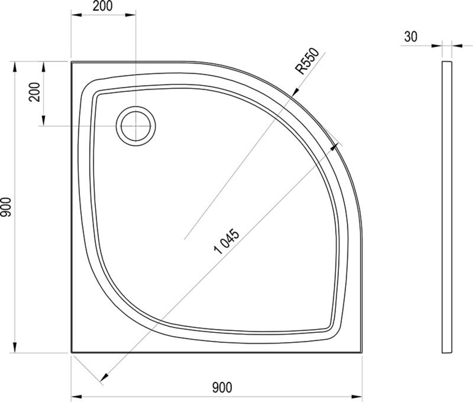 Čtvrtkruhová sprchová vanička Elipso Pro Flat z litého mramoru v bílé barvě. Hladký povrch pro snadnou údržbu.- rozměry: 90x90 cm