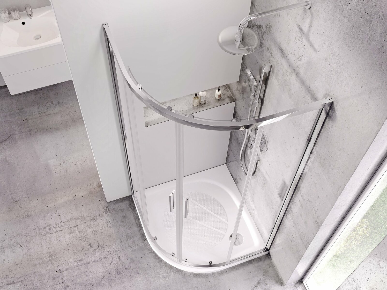 Čtvrtkruhová sprchová vanička Elipso Pro z litého mramoru v bílé barvě. Protiskluzová úprava pro vyšší bezpečnost.- rozměry: 90x90 cm