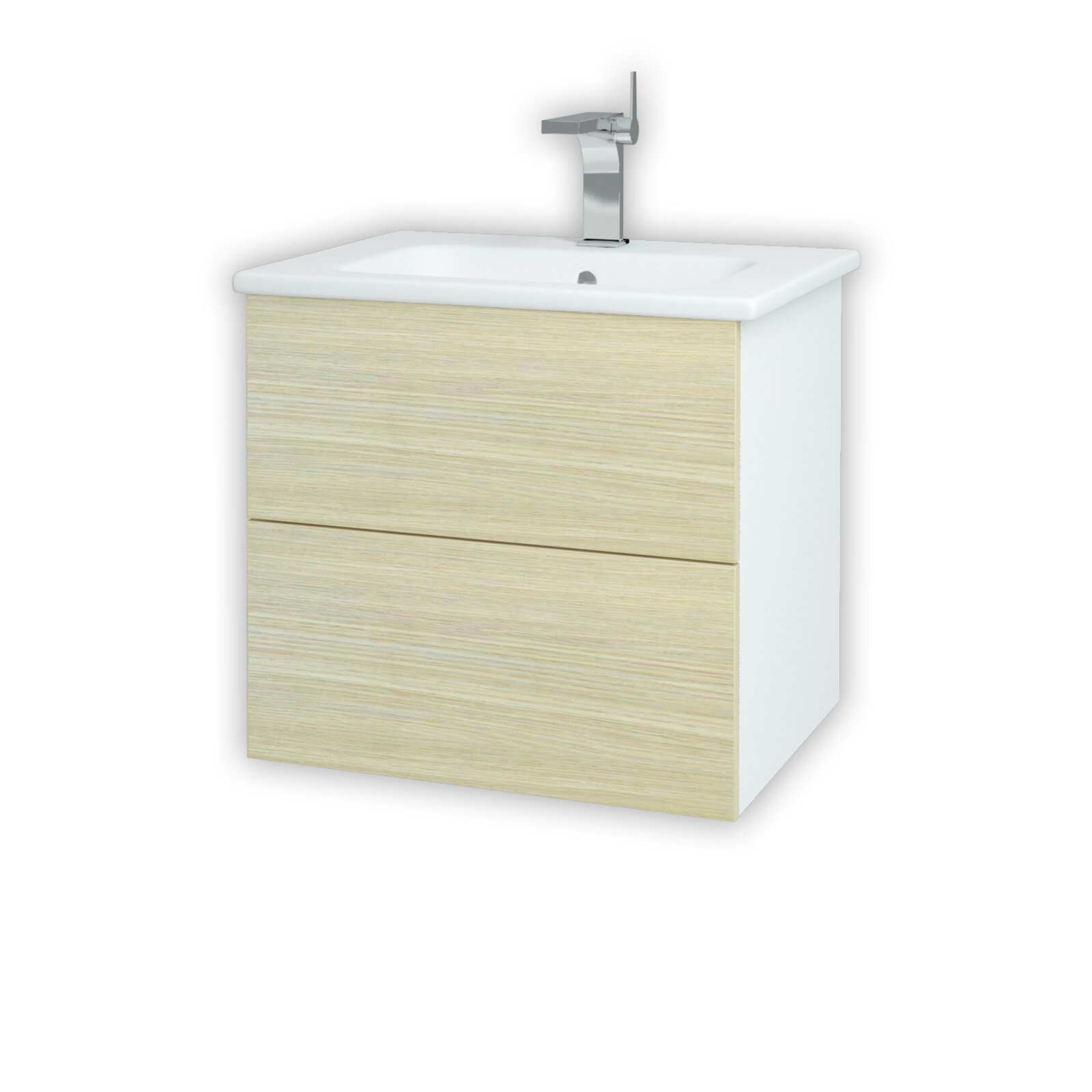 Koupelnová skříňka řady VARIANTE v závěsném provedení v šířce 60 cm (včetně umyvadla), hodí se proto do malých koupelen, kde nezabere mnoho místa, a přitom poskytne potřebný úložný prostor.