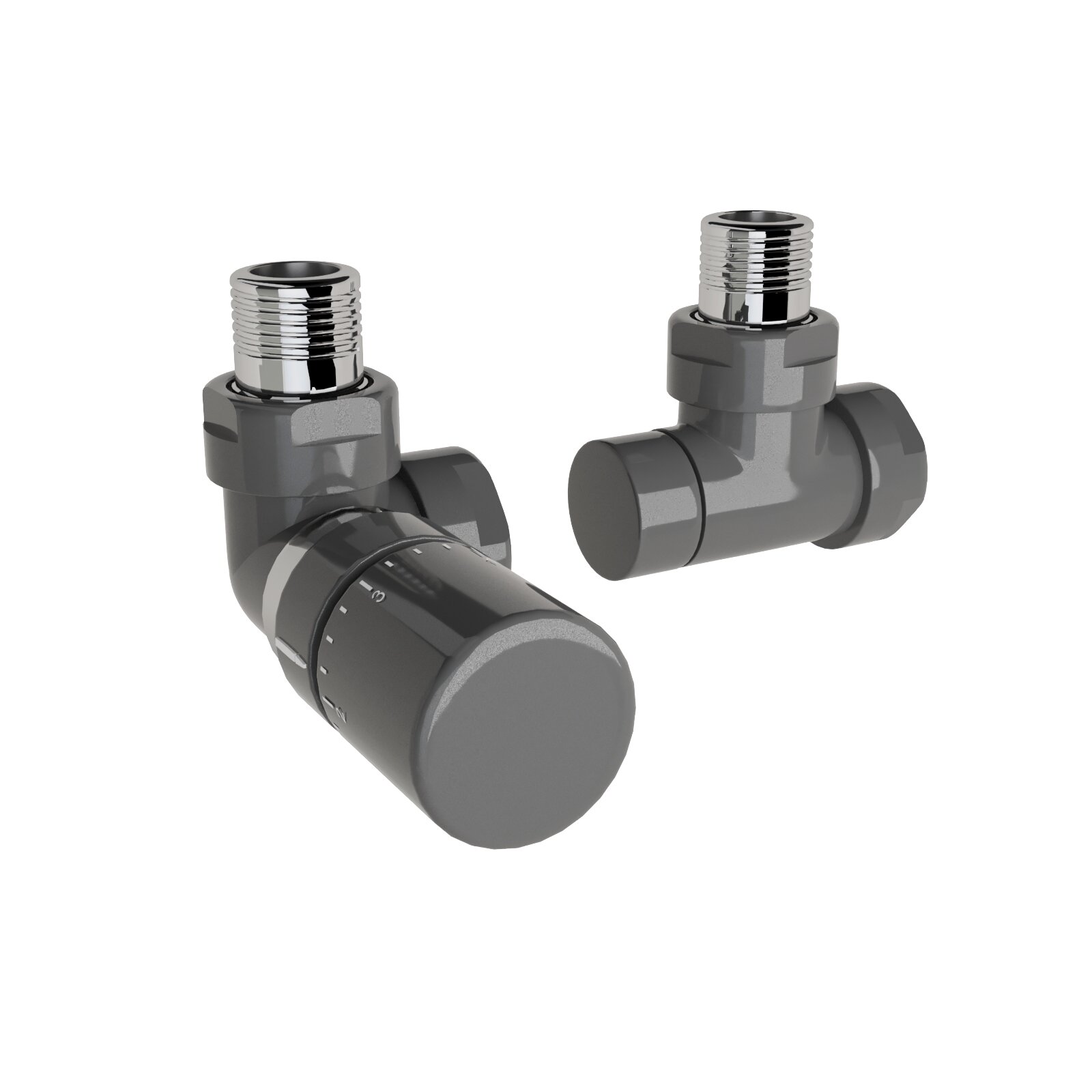 Ventil Zehnder úhlový rohový, rohové šroubení pro zpátečku 1/2", s termostatickou hlavicí Design Line, Set I, RAL 0346 anthracite, Z-839729-0346