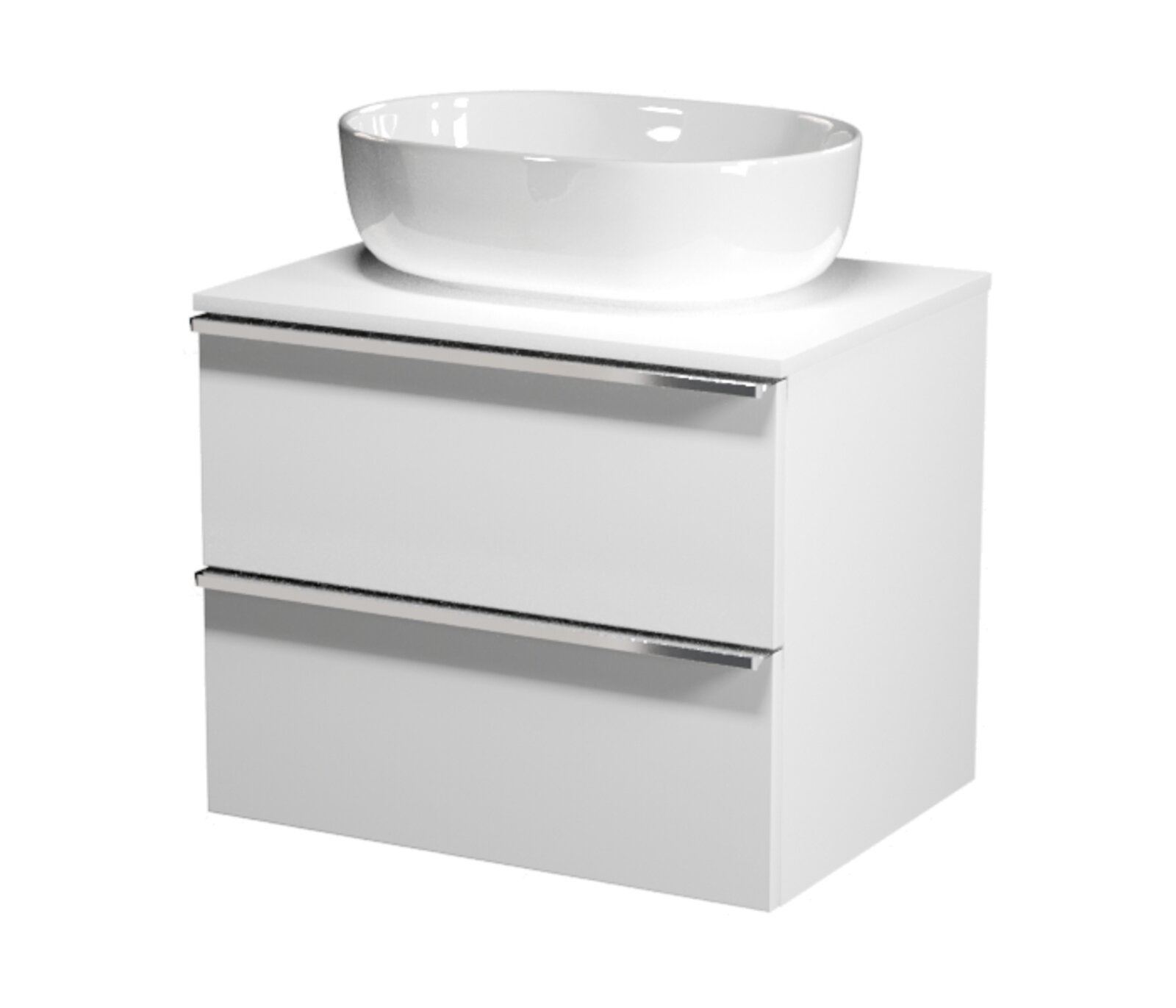 Virgo 60 bílá skříňka úchyt chrom, umyvadlo Moduo na desku oválné 50