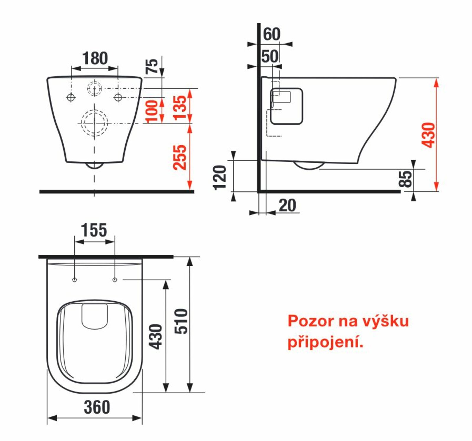 Rimless - bez oplachovacího kruhu. Hluboké splachování, 4,5/3l (lze nastavit 4,2l v kombinaci se správným podomítkovým modulem).