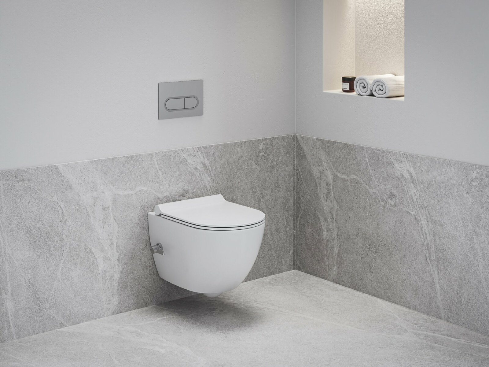 K WC bidetu doporučujeme dokoupit instalační splachovací modul, ovládací tlačítko a sedátko vybavené zpomalovacím systémem SoftClose - WC sedátko Uni Chrome slim nebo Uni Chrome. Sedátko lze z WC bidetu jednoduše vyjmout a dokonale vyčistit prostor pod ním.