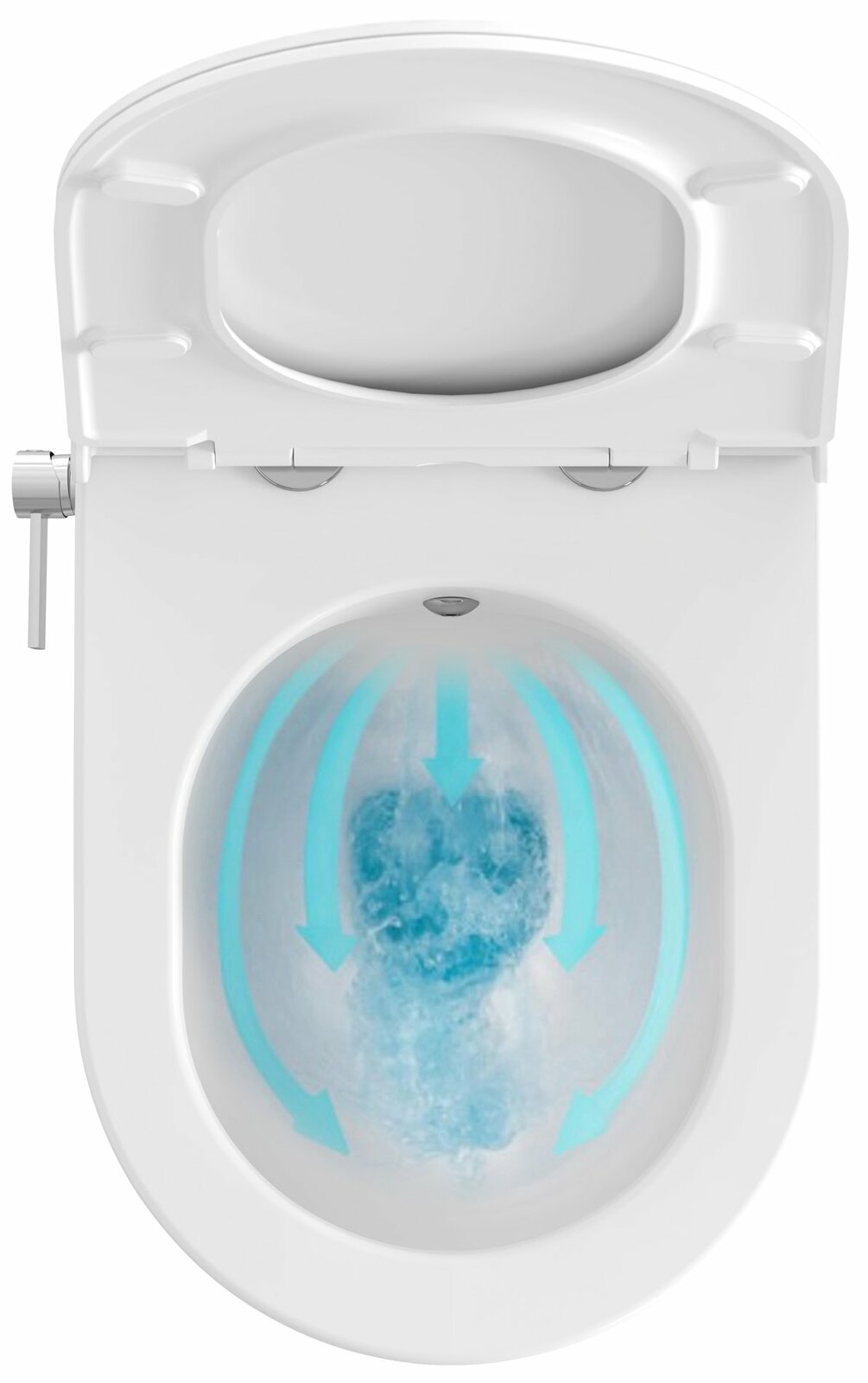 Zabudovaná bidetová tryska uvnitř mísy nevyjíždí, ale je regulovatelná pro nastavení optimálního úhlu proudu vody. Intenzita proudu a teploty vody se ovládá pákovou baterií umístěnou na pravém boku toalety. K zapojení není potřeba přívod elektřiny.