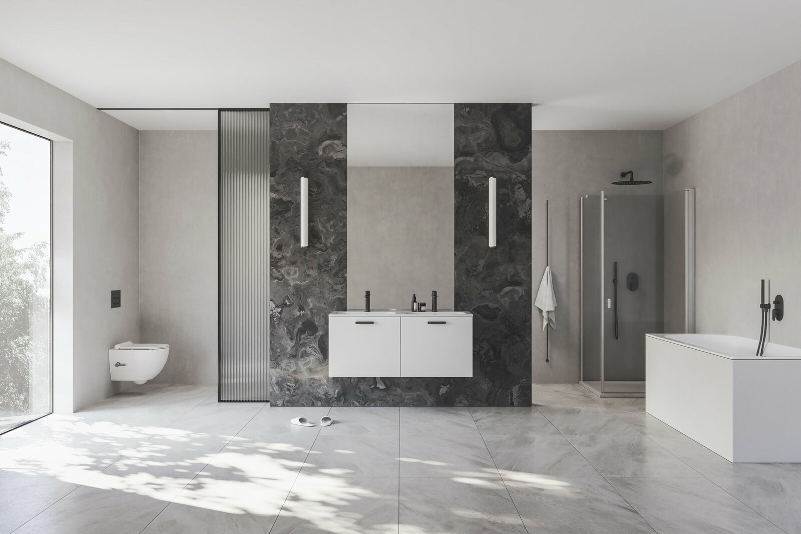- doplňky k dokoupení: WC sedátko Uni Chrome slim nebo Uni Chrome se zpomalovacím sklápěcím systémem SoftClose, instalační modul pro WC, ovládací tlačítko Chrome, koupelnové doplňky
