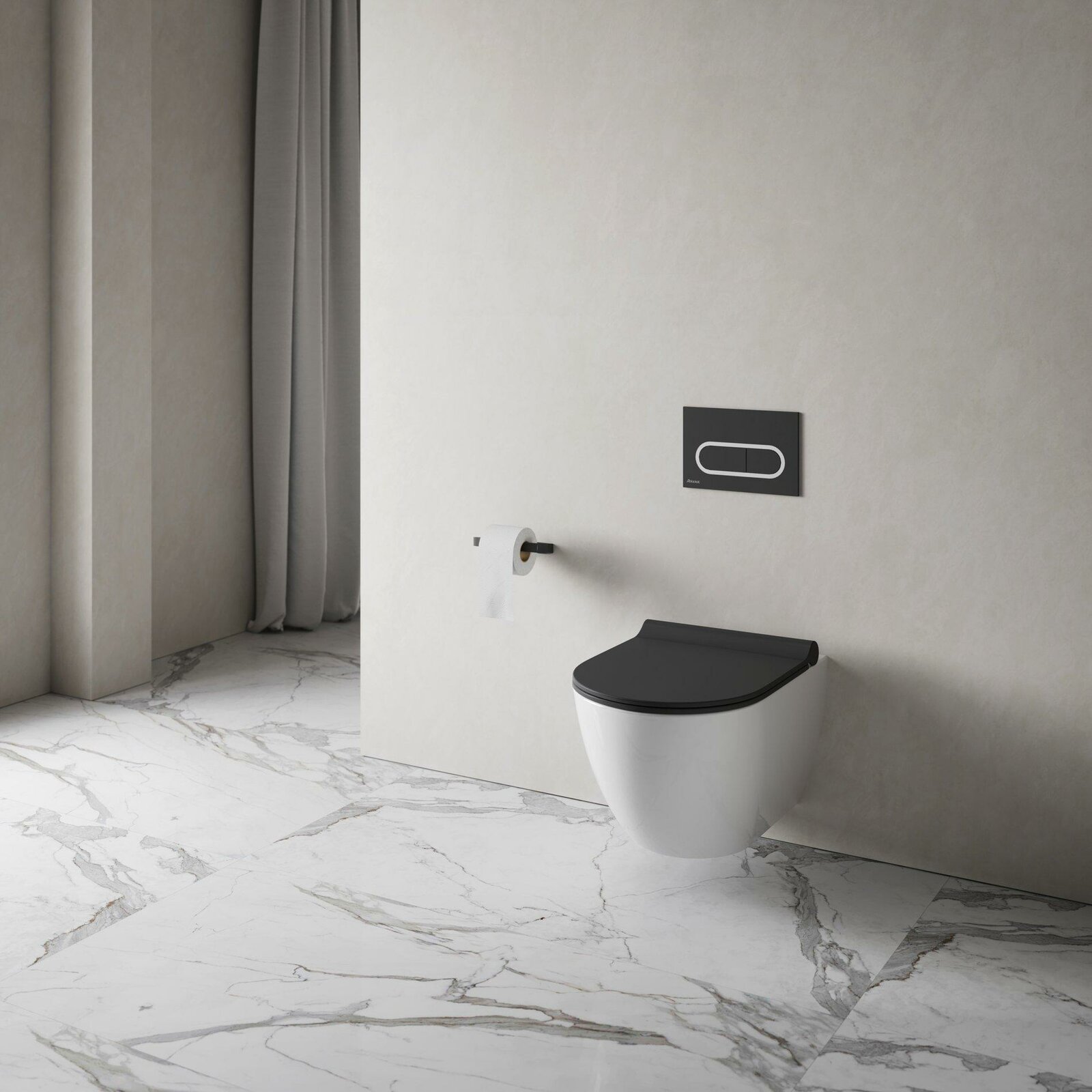K WC doporučujeme dokoupit instalační splachovací modul, ovládací tlačítko a sedátko vybavené zpomalovacím systémem SoftClose - WC sedátko Vita slim. Sedátko lze z WC jednoduše vyjmout a dokonale vyčistit prostor pod ním. V bílé nebo černé variantě.