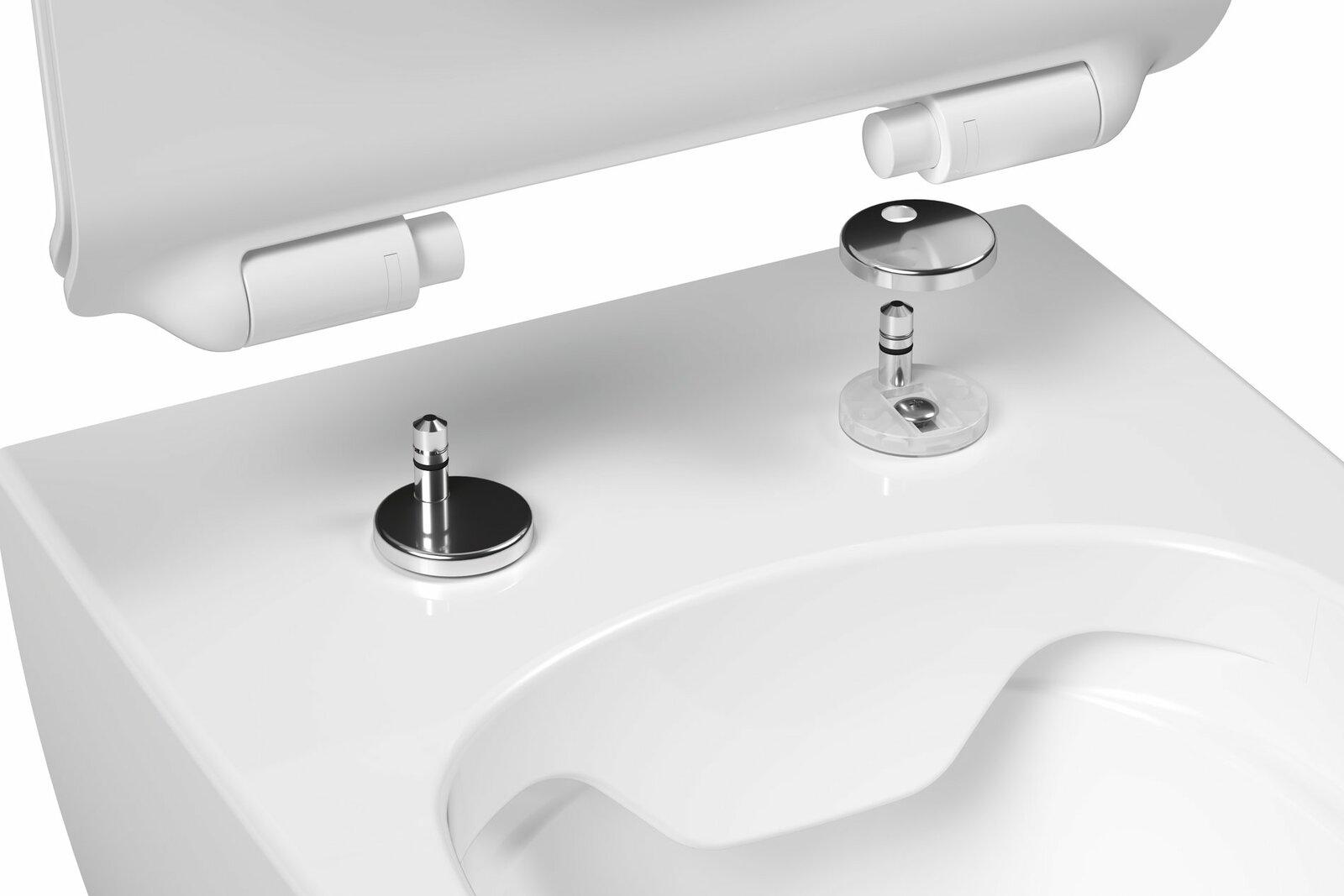 Tradiční metody uchycení toalety, které zahrnují viditelné montážní prvky, jsme nahradili inovativním systémem skryté montáže EasyFix, kdy je uchycení toalety shora skrz otvory pro sedátko. Jednou z jeho hlavních výhod je estetika, protože už žádné viditelné šrouby nebo montážní prvky nebudou rušit celkový vzhled vašeho WC.