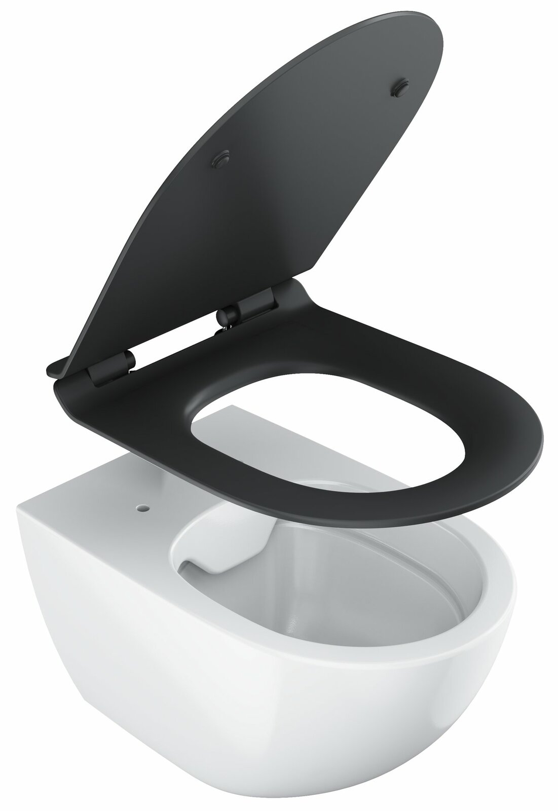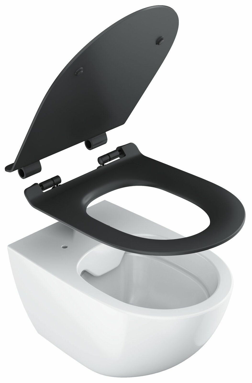 Sedátko Vita Slim k WC Vita RimOff v černém provedení.- rozměry (š/h/v): 364 x 450 x 51 mm